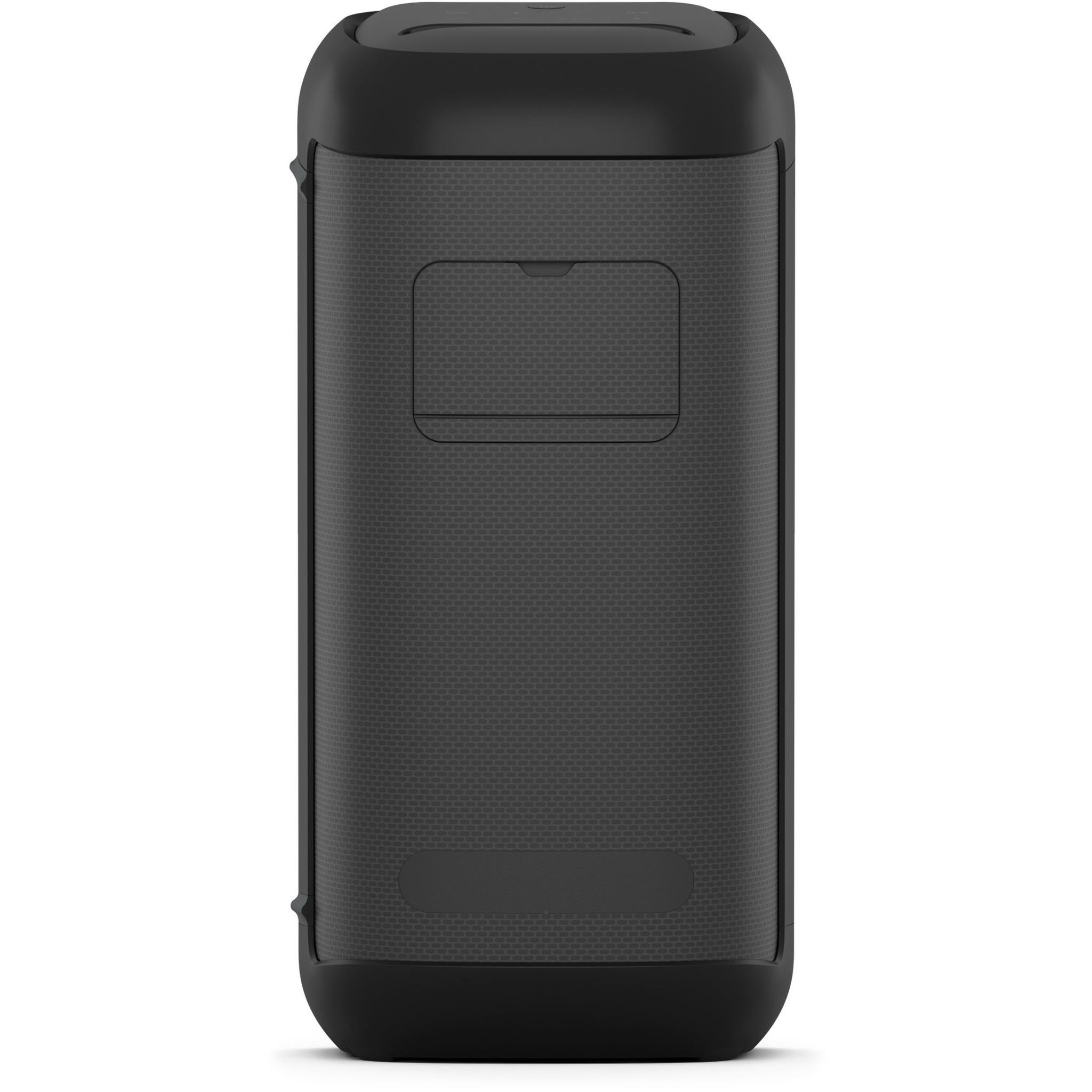 Grab the SRS-XV500 wireless party speaker and take the party wherever you go. This speaker packs powerful sound. built-in lighting and a long-lasting battery—you can even plug in a karaoke mic and sing the night away. With the XV500. you have everything you need to entertain your friends and family.