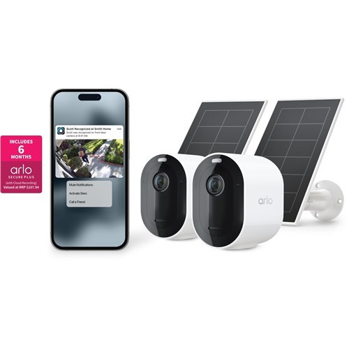 Leave your worries at the door with cutting edge clarity and powerful protection with the Arlo Pro 5 2K. Installation is easier than ever with a wire-free setup and smart Wi-Fi with dual-band connection that automatically recognizes and connects to the 2.4 or 5GHz network. whichever is stronger. See the details that matter with 2K HDR video and 12x zoom. and a wide 160 degree field of view helps to see the bigger picture. With the Arlo Solar Panel Charger it keeps your battery charged with direct sunlight. It’s weather resistant design. 2.4m magnetic power cable. and adjustable mount makes installation easy anywhere. Get smarter notifications on your phone when the Pro 5 2K spots people. vehicles. animals. or packages. and view live or recorded video clips directly from your phone with a 6 months Arlo Secure Plus service included.1