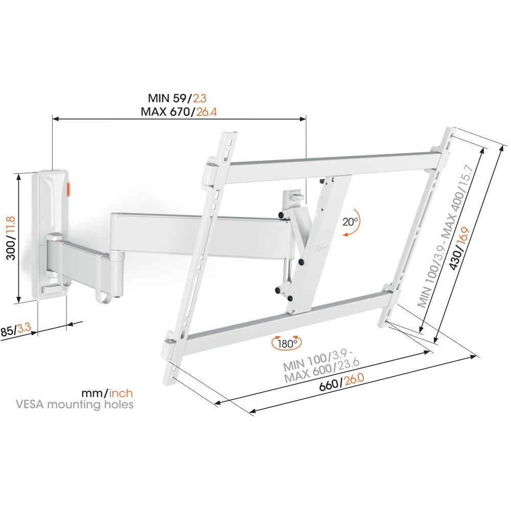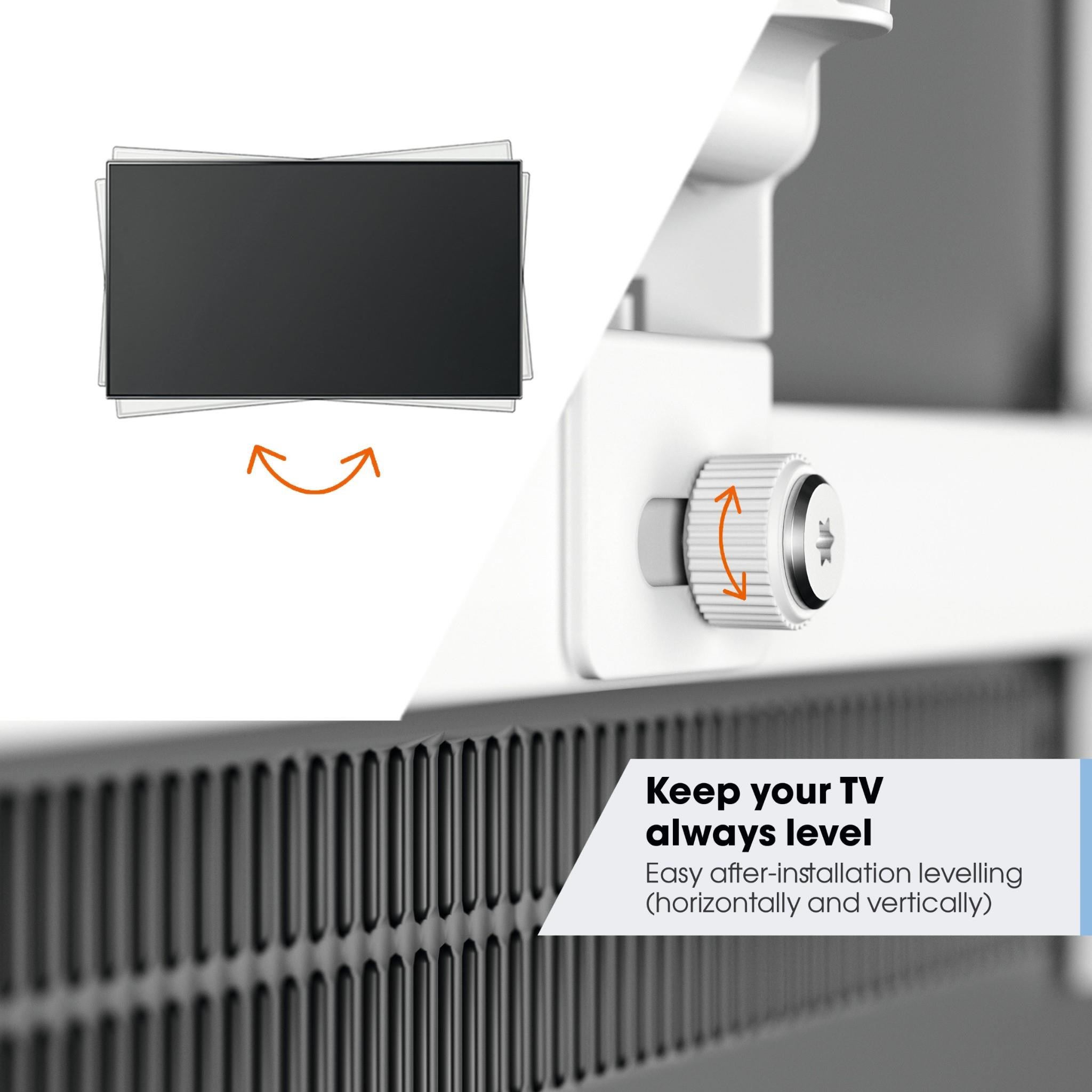 With this stylish COMFORT Full-Motion+ TV wall mount. you can enjoy your large TV to the max. The wall mount can turn up to 180° and tilt up to 20° for optimal viewing comfort. It is designed for intensive use. so it is ideal for families with children. Your TV is guaranteed to be mounted safely and securely. The wall mount is suitable for TVs from 40 to 77 inches and weighing up to 35 kg.