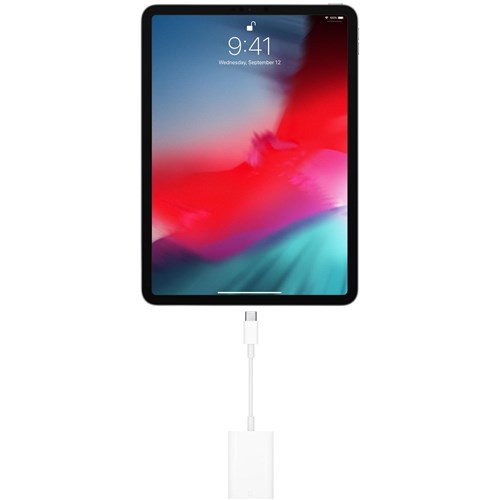 The USB-C to SD Card Reader transfers high-resolution photos and videos at UHS-II speeds to your USB-C–enabled Mac. iPad or iPhone. Designed so it won’t block your other ports. it works with UHS-II SD cards and is backwards compatible with other SD cards and adapters.
