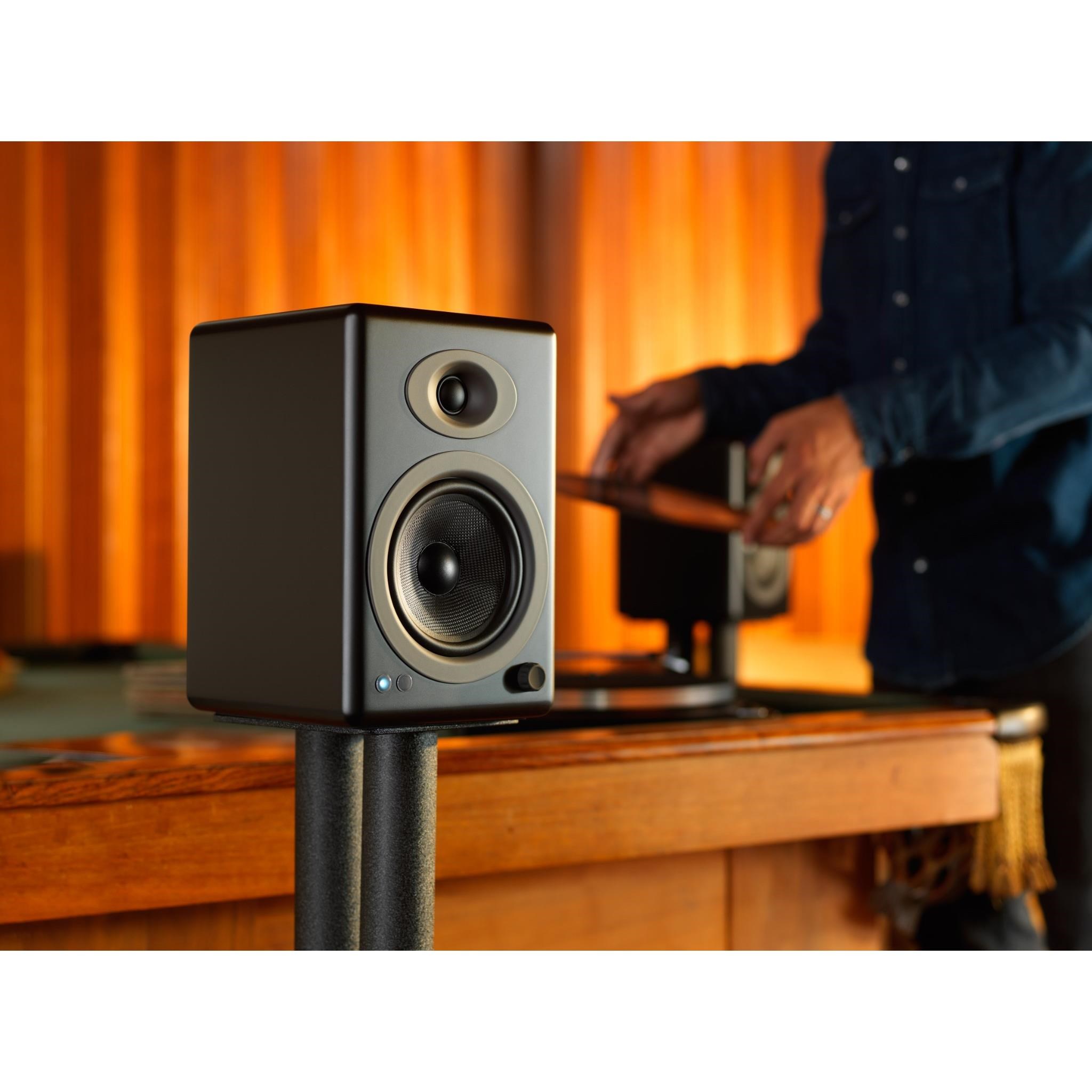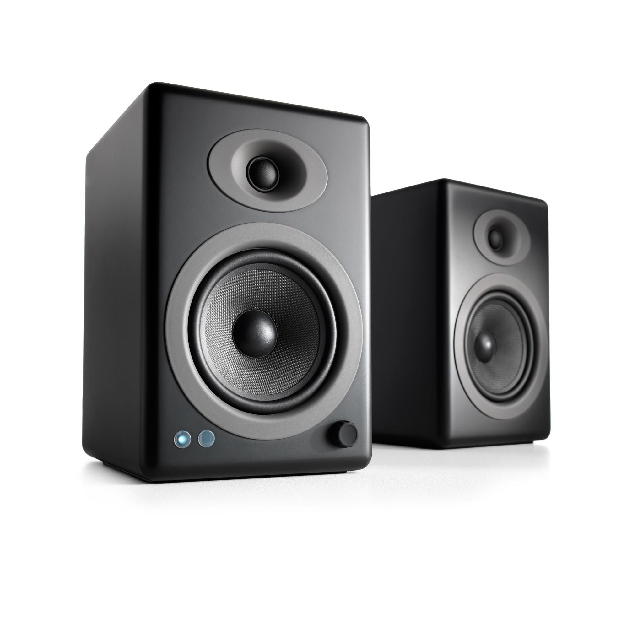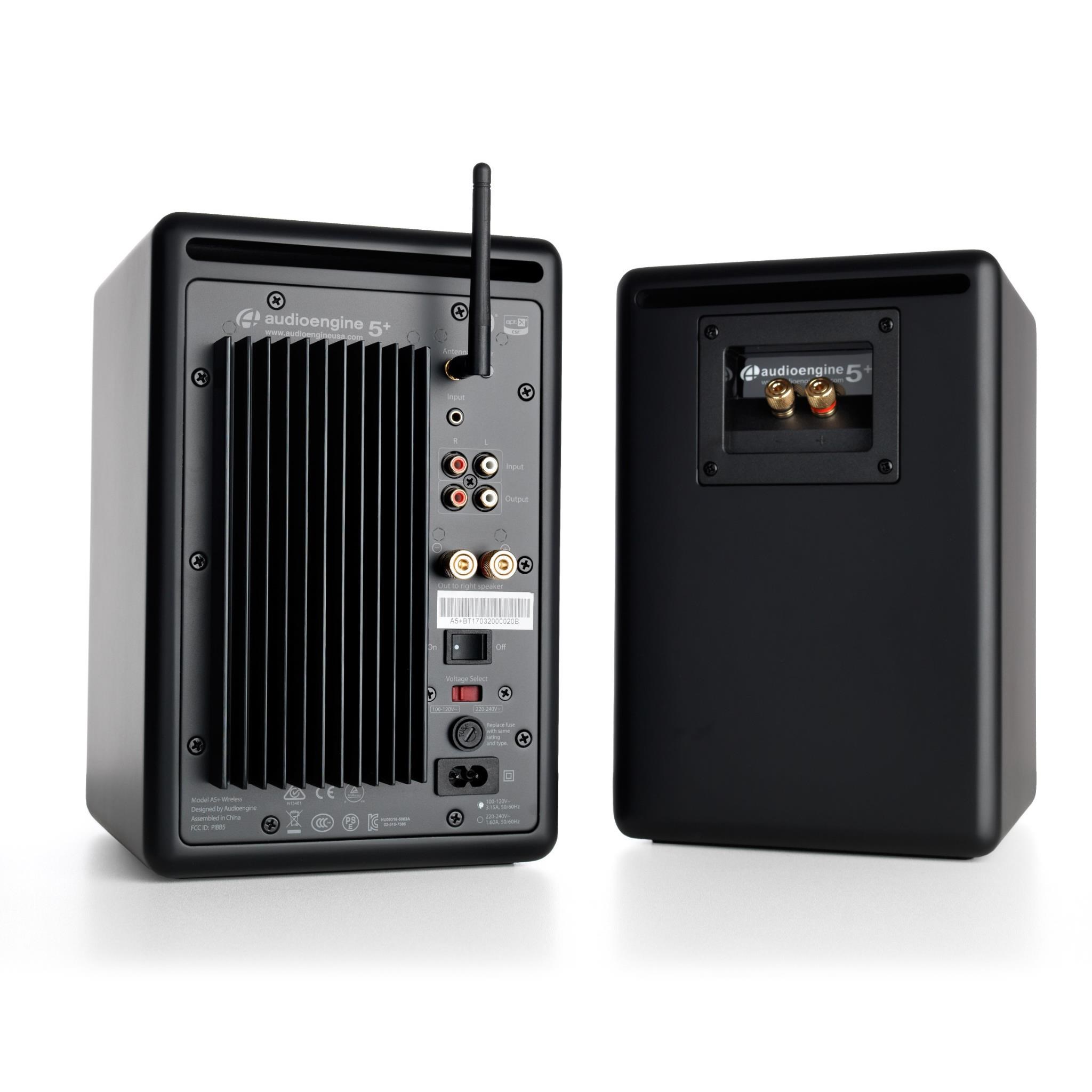 Clear. full and powerful audio that fills any room. The A5+ Wireless Speakers are constructed with custom Audioengine components: Kevlar woofers. silk tweeters. high-fidelity Bluetooth aptX-HD. and built-in power amps wrapped in hand-built wood cabinets with furniture-grade finish. Perfect for any size space.