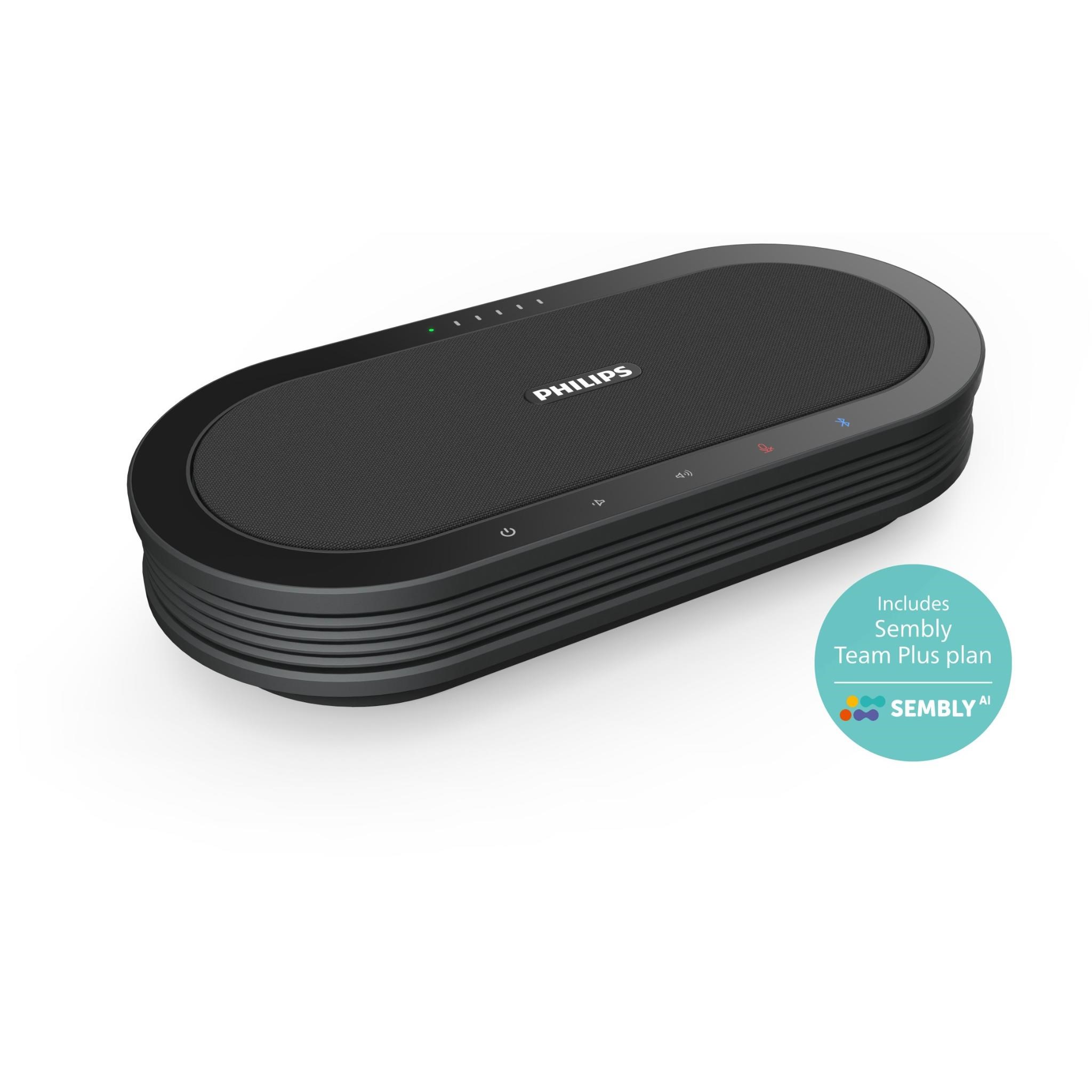 The Philips SmartMeeting Conference Microphone and Sembly Meeting Assistant take part in meetings with you as your dedicated note takers. The microphone’s smart speech-enhancing and noise-filtering technology ensures clear and natural sounding calls. Sembly creates automatic transcripts. summaries and highlights action points and to dos for you. The solution helps you find out who said what easily and quickly after every meeting. even if you could not attend.
