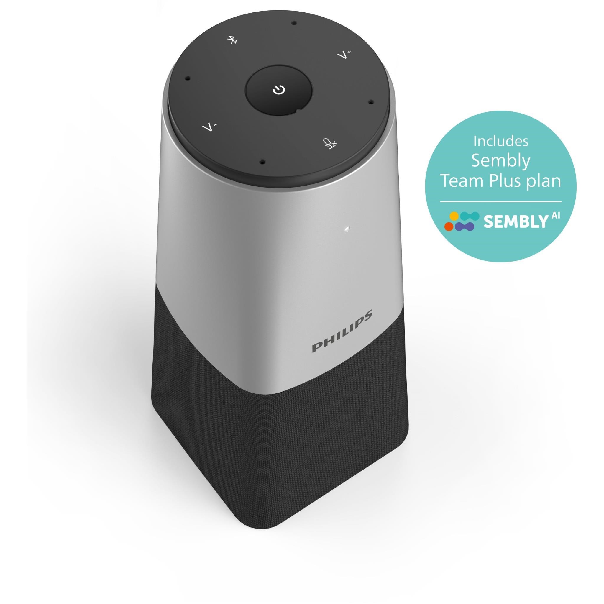 The Philips SmartMeeting Conference Microphone and Sembly Meeting Assistant take part in meetings with you as your dedicated note takers. The microphone’s smart speech-enhancing and noise-filtering technology ensures clear and natural sounding calls. Sembly creates automatic transcripts. summaries and highlights action points and to dos for you. The solution helps you find out who said what easily and quickly after every meeting. even if you could not attend.