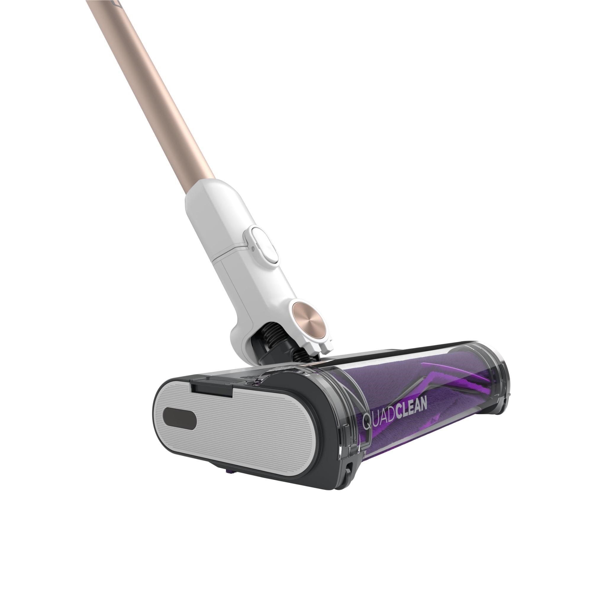 You'll never have to swap floorheads when switching from carpets to hard floors—the QuadClean Multi-Surface brushroll tackles four cleaning targets: fine dust. pet hair. large debris. and dust along edges.
