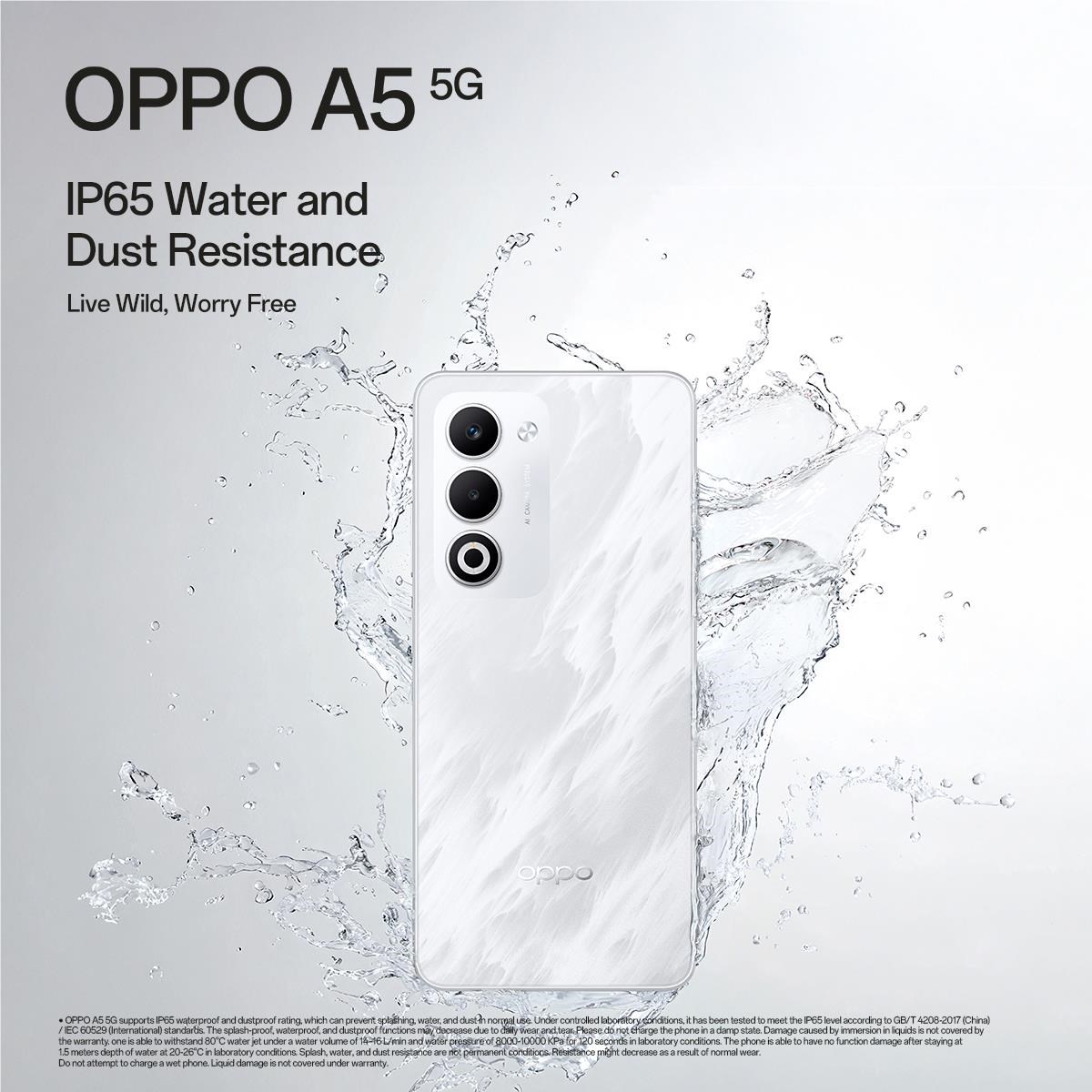 Redefining durability and performance with all-round upgrades in design. battery life. charging. and reliability is the brand-new OPPO A5 5G.  Designed to perform and built to last. it’s the ultimate choice for go-getters seeking long-lasting endurance and a smarter life. all with exceptional affordability.
