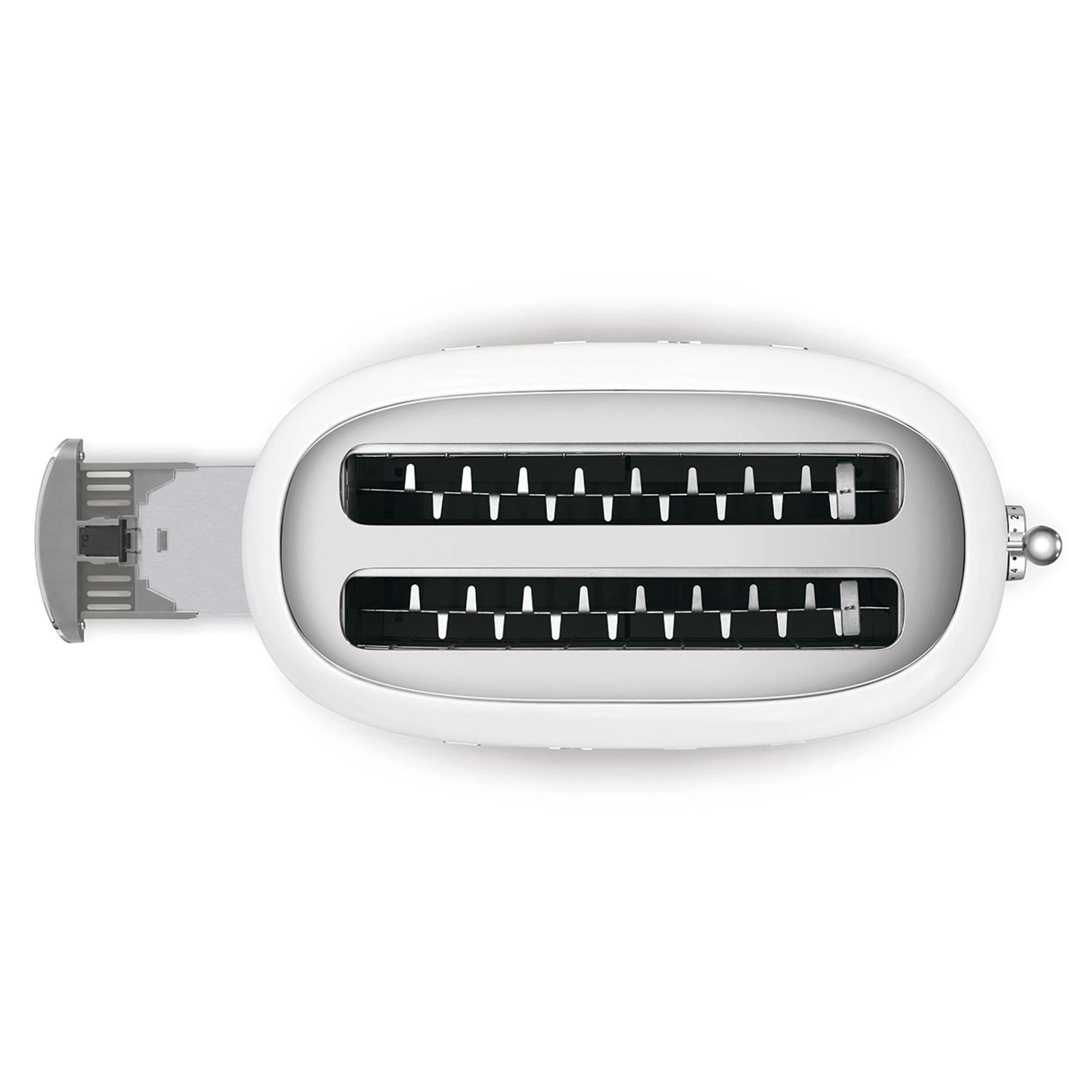 Extra-long. 36mm wide slots to accommodate artisanal. hand-cut breads. with self centering racks for even toasting.