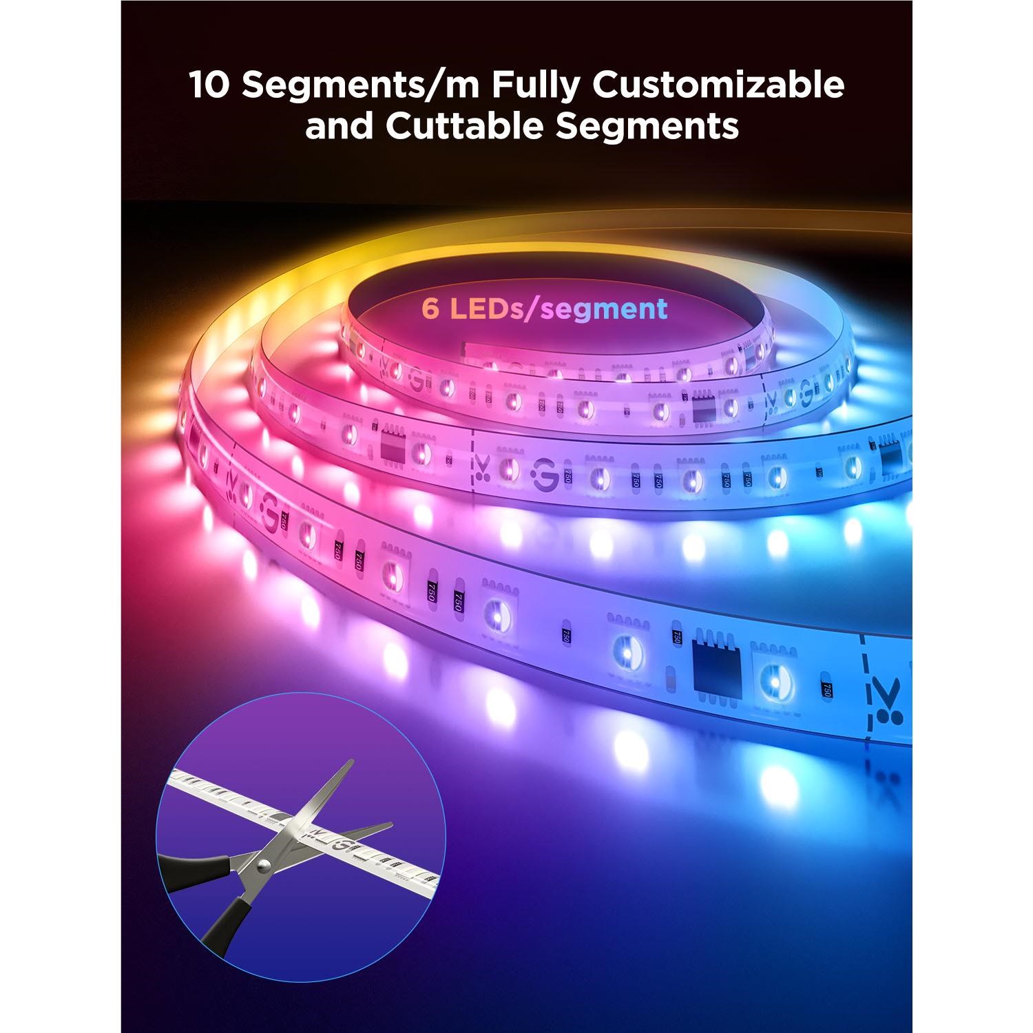 The customisable and cuttable LED strips have 10 segments every meter. with altogether 16 million total settable colours.