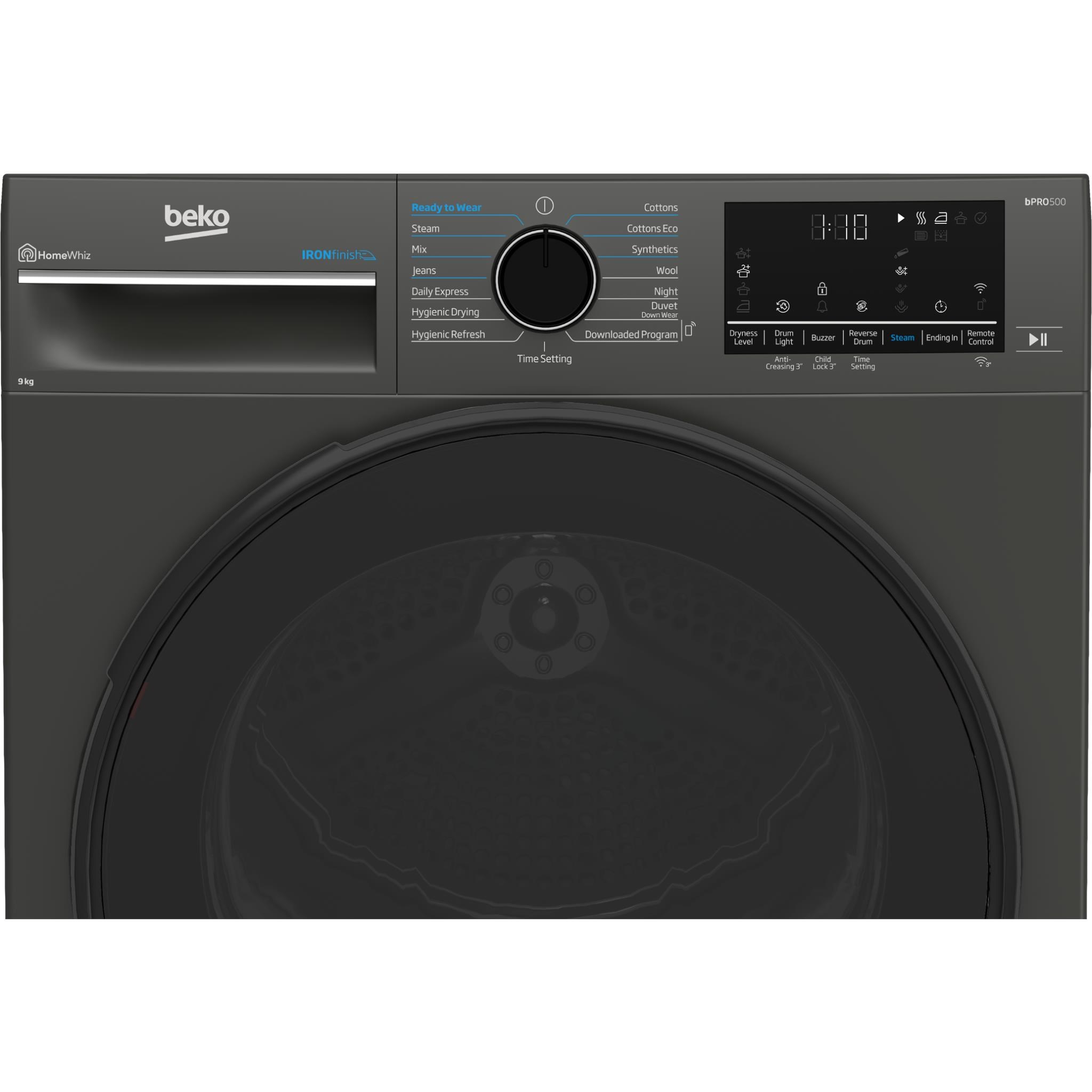 Easily control your tumble dryer from your smartphone with our HomeWhiz technology Wizard. You can also download new programs. customise programs and set them as your favourite . You can also remotely control and monitor your tumble dryer with your device.
