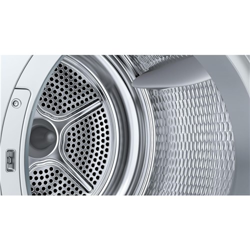 ActiveAir Technology makes Bosch Heat Pump dryers amongst the most economical dryers in Australia. Energy is saved by reusing existing heat efficiently during the entire drying process resulting in less humidity and lint pollution in your home. Bosch Heat Pump dryers use a refrigerant instead of conventional dry heat to create warm air inside the drum that is evenly distributed. Simply put. no overheating. Garments are dried gently with one of three sensor controlled dryness targets: - Cupboard Dry for regular items. - Cupboard Dry Plus for thicker garments. - Iron Dry for items that still need a to be a little damp after drying for ironing or hanging up. If you feel that the laundry is too damp when the drying program has ended you can adjust the Drying Level for future uses of the program to make the program run longer. The large water condensation container stores water and can easily be emptied. allowing a Bosch Heat Pump dryer to be conveniently placed in almost any room within your home.