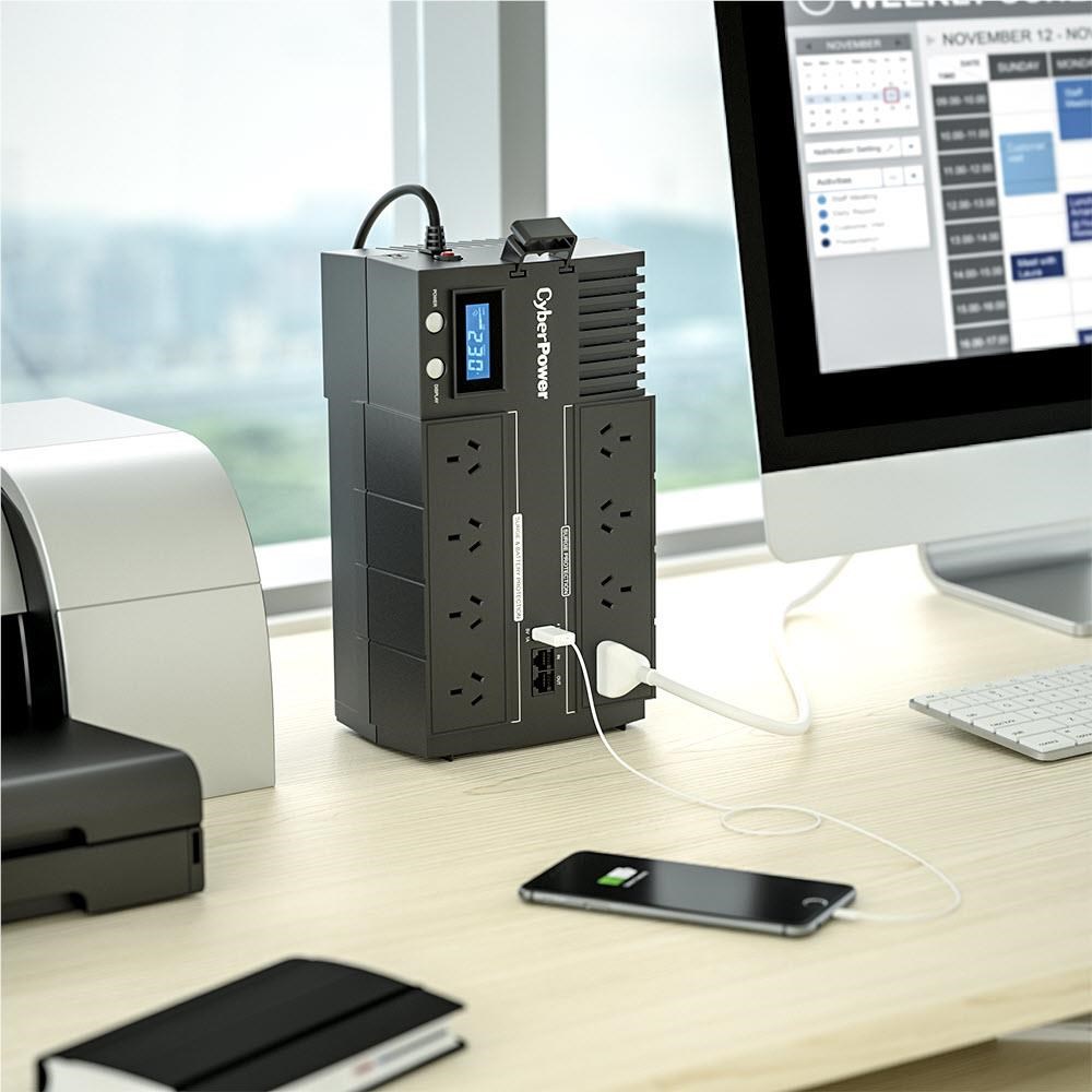 CyberPower BR1000ELCD offers home and office users a reliable battery backup and safeguards office PCs. network communication equipment. and other electronic devices from surges. spikes. brownouts and other power incidents. Designed with GreenPower UPS™ Technology to improve operating efficiency and to minimize energy consumption. users can enjoy significant energy cost savings over conventional UPS systems.