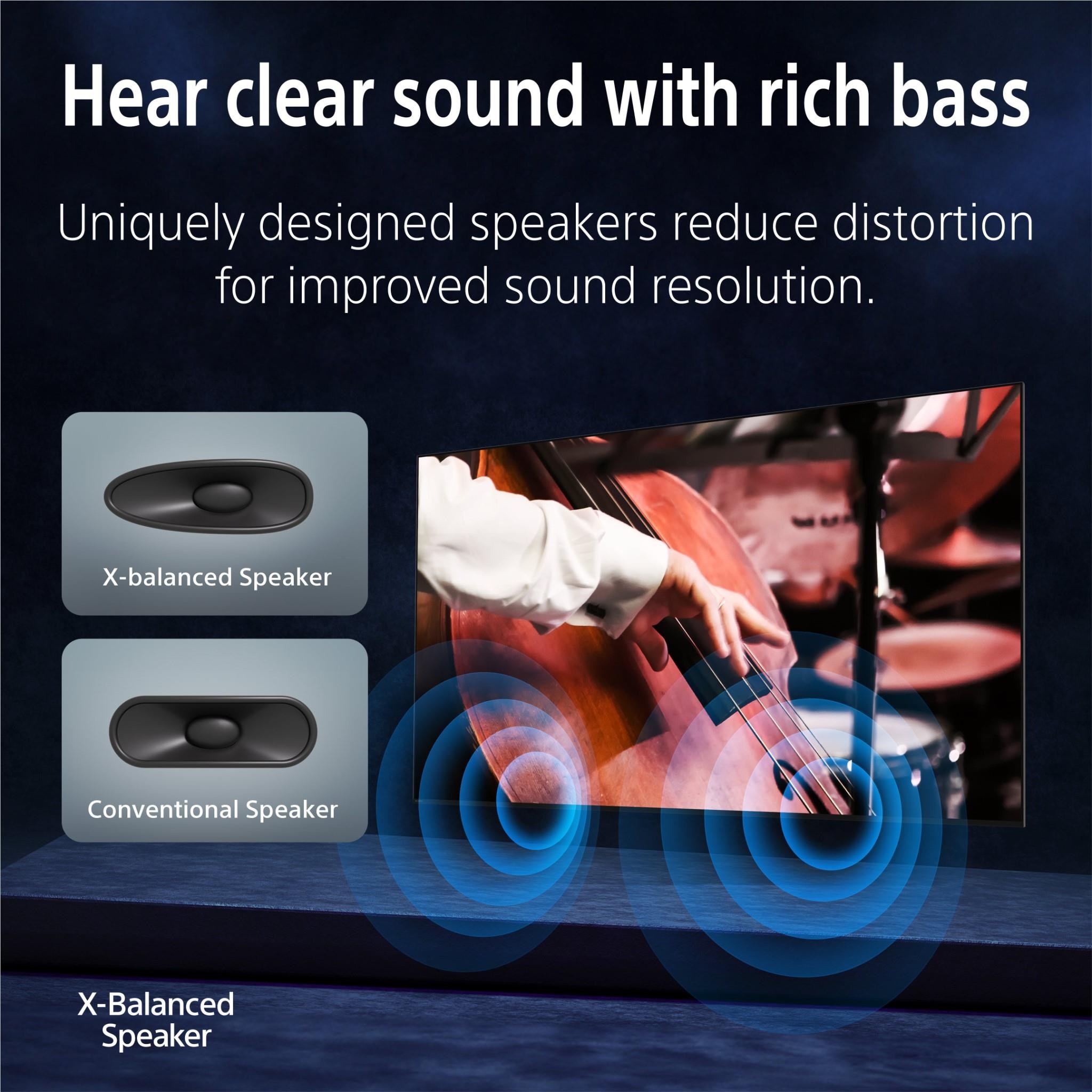Clarity is crucial. Unlike conventional TV speakers where sound waves can become blurred. our X-Balanced Speaker™ with its uniquely-shaped diaphragm reduces distortion for improved sound resolution.
