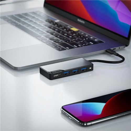 The USB-C Fusion CORE 5-in-1 Hub features five ports to extend the connectivity of USB-C enabled phones. tablets. and laptops. Plug in your device to the HDMI port to mirror or extend your screen in Ultra HD. Connect to the USB-C port for up to100W power delivery pass-thru. or to quickly transfer multimedia files at 5Gbps [USB 3.1 Gen 1]. The Fusion’s three USB-A ports [USB3.0] are perfect for popular USB peripherals including keyboards. mice and scanners. and they also support up to 5Gbps data transfer speeds. The Fusion Hub also features an extended USB-C cable that’s convenient to use with all types of USB-C devices.