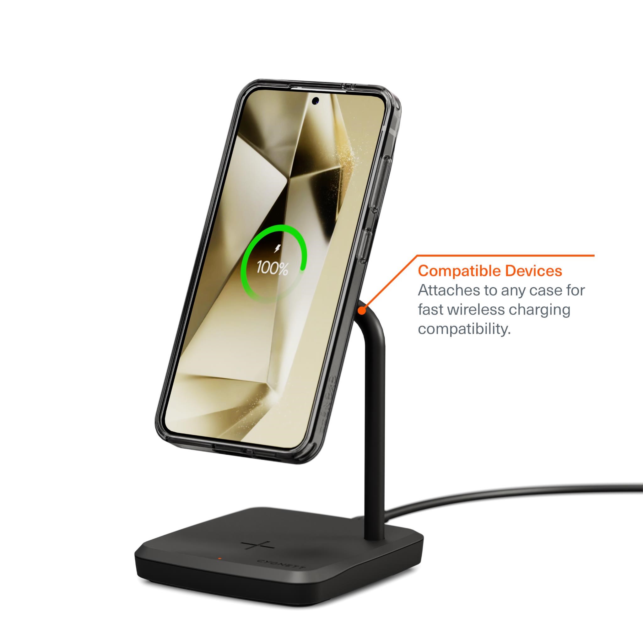 Transform any wireless charging phone case with this ultra-thin magnetic attachment ring. Simply apply it to the back of your phone case and enjoy the ease of fast. secure. and seamless wireless charging. anytime. anywhere.