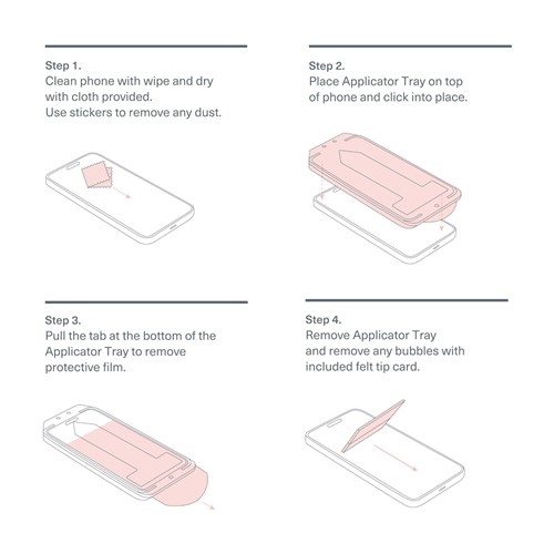 Apply the OpticShield to your device without air bubbles or dirty fingerprints. using the included easy-apply applicator. Everything you need to apply your screen protector is included in the box.