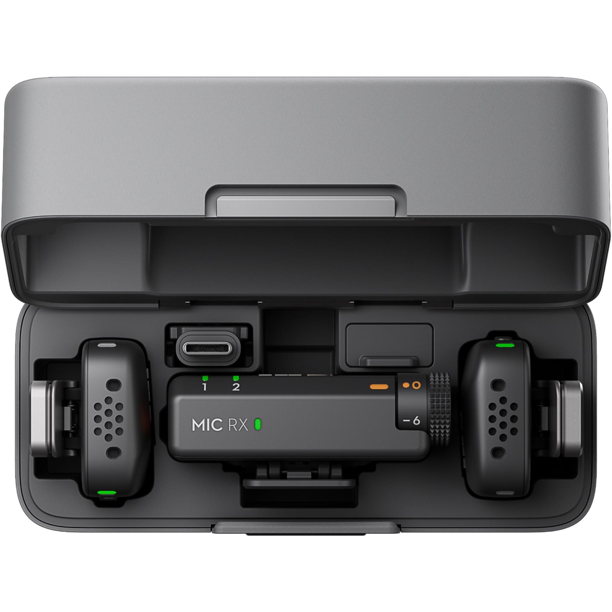A transmitter and a receiver offer a maximum operating time of 11.5 and 10.5 hours. [6] respectively. A fully charged case provides approximately 3.6 full charges to achieve a total of 48 hours of extended use. [1] This makes the DJI Mic Mini ideal for long trips. interviews. and other intensive usage scenarios.