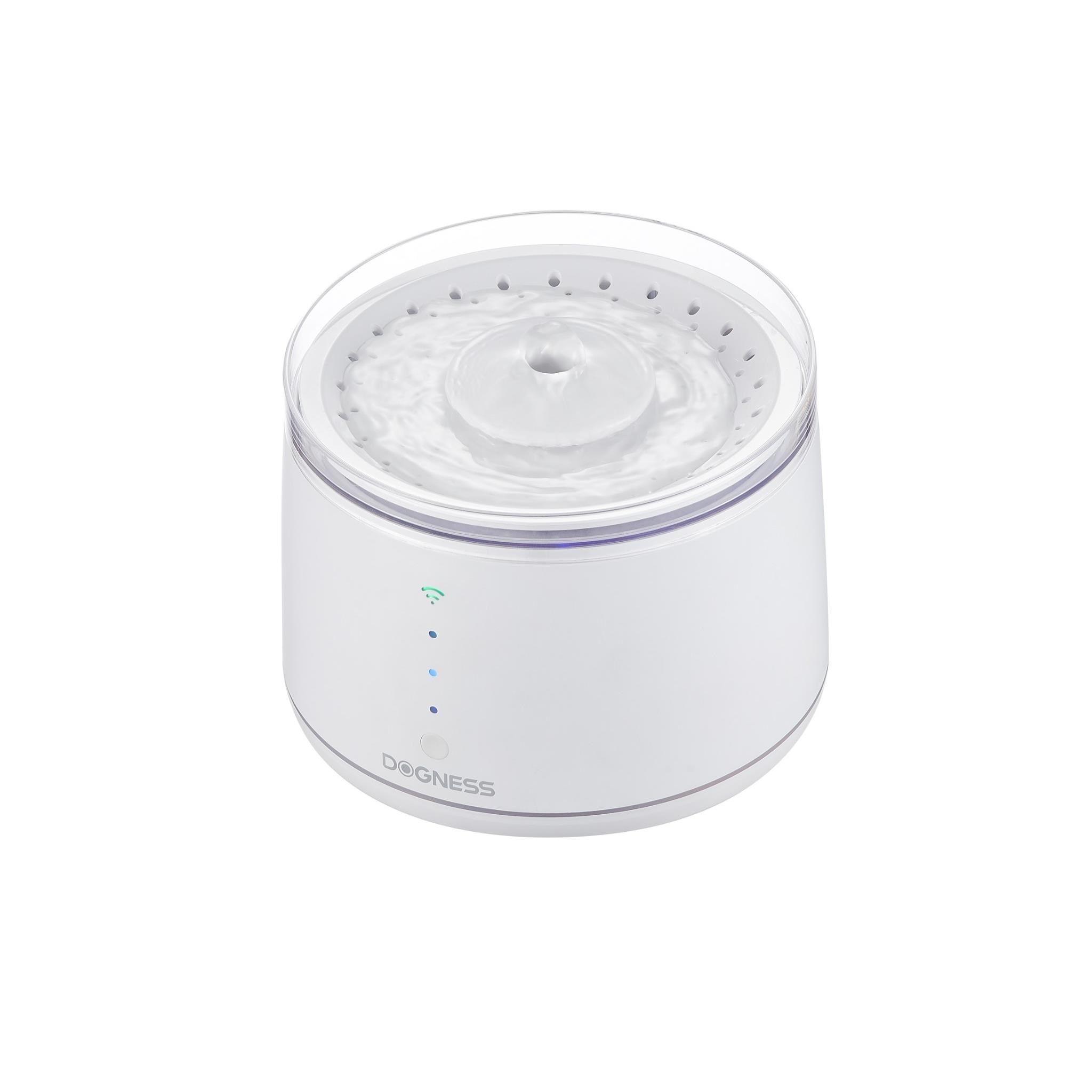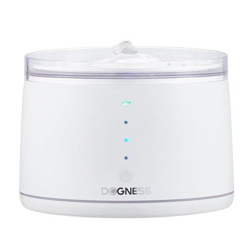 The Dogness Smart App Pet Water Fountain holds up to 1.8 Litres of water for dogs and cats. Connect the water fountain to the Dogness app and control it remotely from the comfort of your smartphone. no need to worry about your pets thirst while away from home. You can control the drinking time. and the watering schedule straight from your phone using the app. The app tells you if the water level is low and if the filters should be changed.