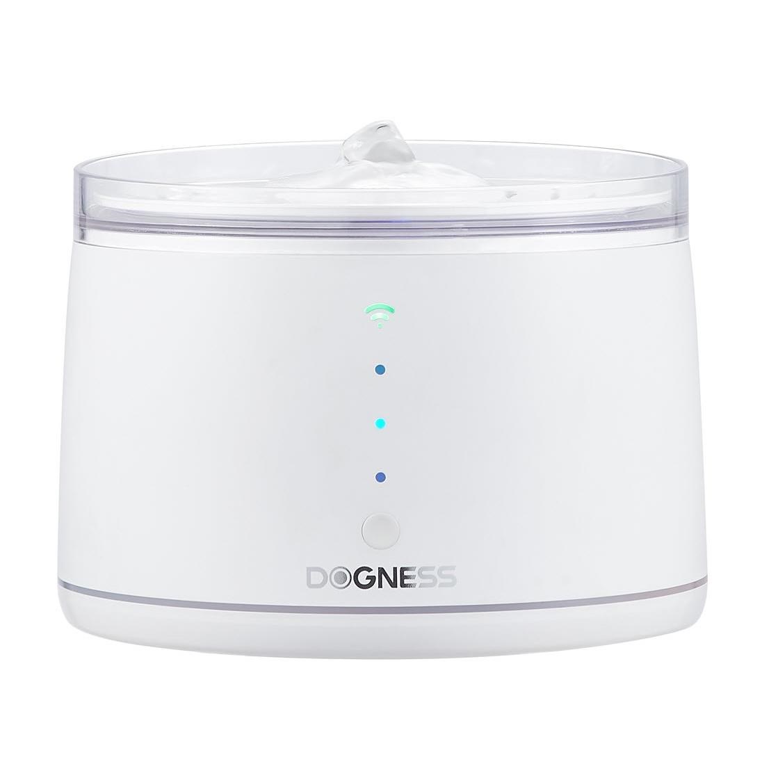 The Dogness Smart App Pet Water Fountain holds up to 1.8 liters of water.