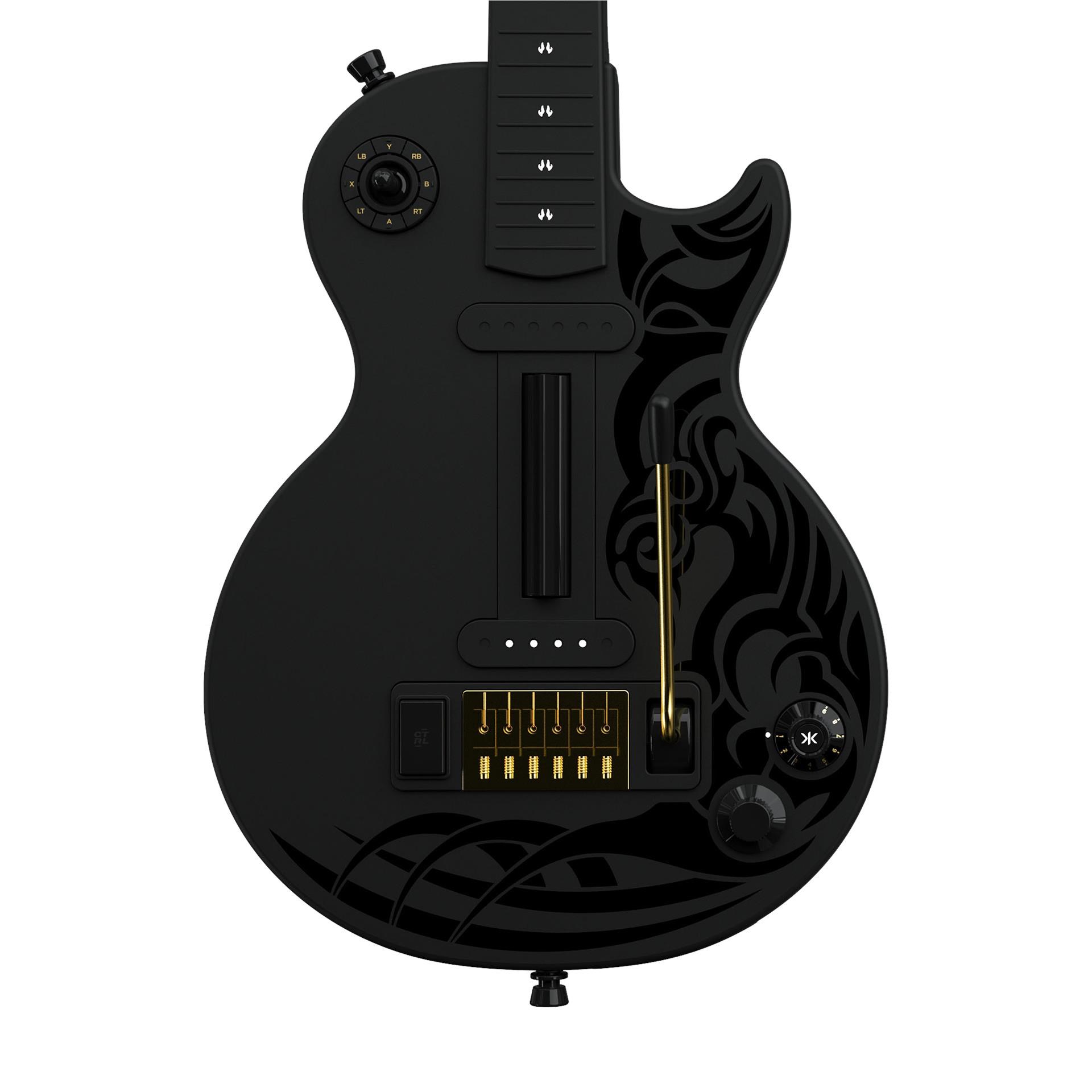 Take center stage and rock the spotlight with the CRKD x Gibson® Black Tribal Encore Edition Les Paul™ Guitar Controller. designed for PC. PC handhelds. Nintendo® Switch™. Android® devices. including Smart TVs. tablets. mobile devices. and cloud streaming services such as Xbox® Cloud Gaming and Luna®.