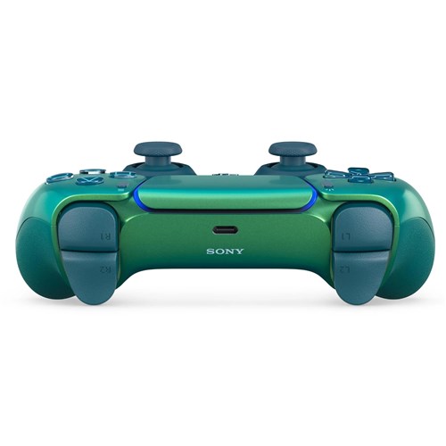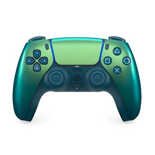 Shifting colour from every angle through iridescent shades of green. the Chroma Teal DualSense® wireless controller is a fresh addition to the PlayStation®5 accessories range.