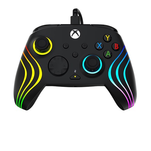 Unlock elevated gaming performance and style with the Turtle Beach® Afterglow™ Wave RGB gaming controller for Xbox Series X|S. Xbox One and Windows 10 & 11 PCs. Featuring Hall-Effect 3-stop adjustable triggers. you can fine-tune trigger sensitivity and enjoy smooth. precise. and durable control. Customize your controller’s style with intelligent RGB lighting. offering eight unique lighting zones and eight different preset modes with adjustable brightness. Customize your gameplay with two mappable quick-action buttons. keeping essential commands within close reach. Stay locked in with patented D-pad audio controls at your fingertips. allowing for instant adjustments to game/chat volume mix and master volume. plus a dedicated mic mute button. Download the Control Hub companion app for Xbox consoles & Windows PCs giving you advanced customization options for lighting. button mapping. as well as controller configuration and diagnosis. Dual rumble motors and impulse triggers provide immersive. responsive feedback. and an ergonomic shape with laser-etched textured grips ensures a fatigue-free feel. Officially licensed for Xbox and PC. the controller’s 10ft USB-C wired connection ensures reliable. lag-free gaming.