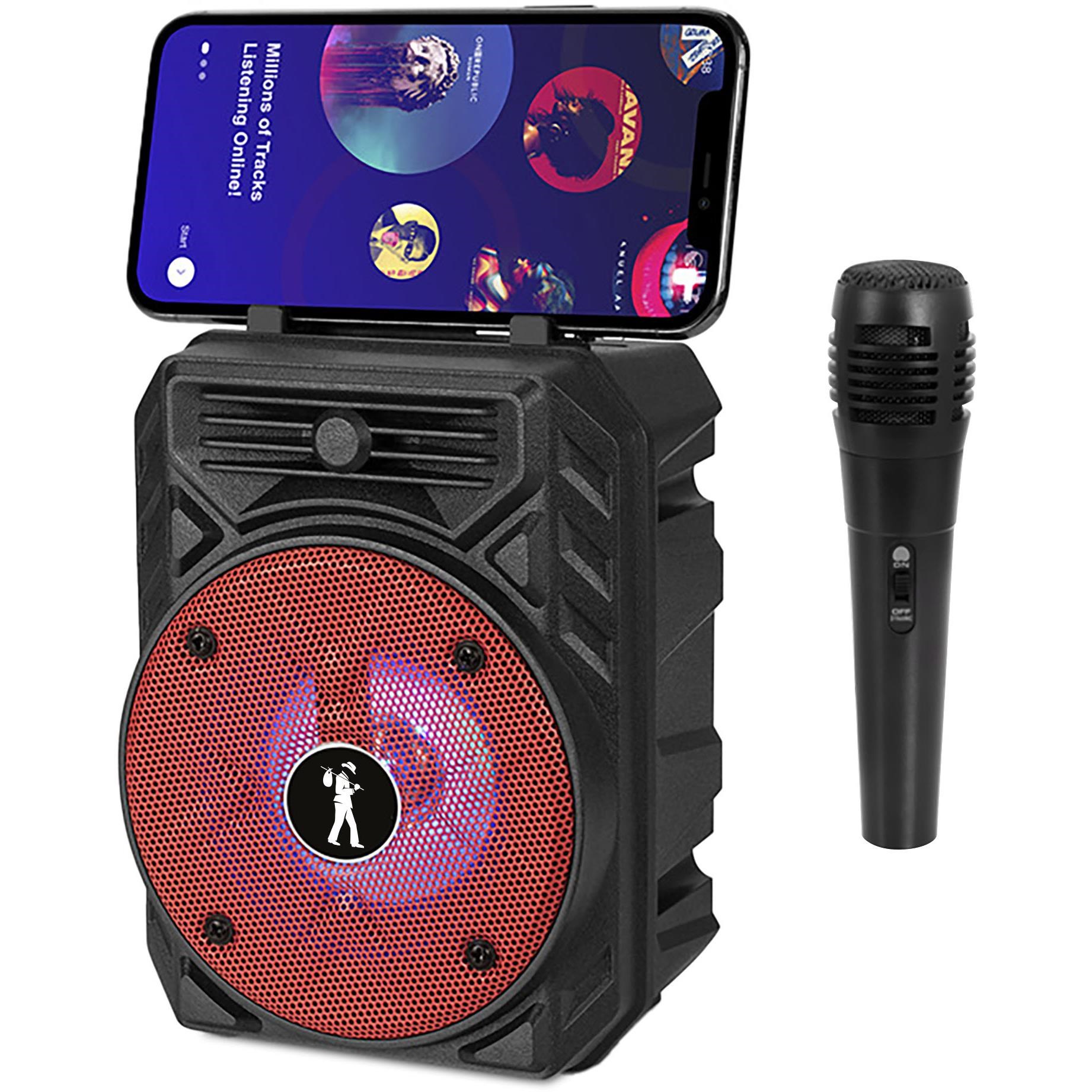 Turn any room into a stage with the Flea Market Karaoke Machine with Mic! Jam out with LED speaker lights. sing along to your favourite tunes from SD cards or USB drives and take the fun anywhere with the built-in rechargeable battery. Comes with a karaoke microphone and USB charging cable—ready. set. sing!