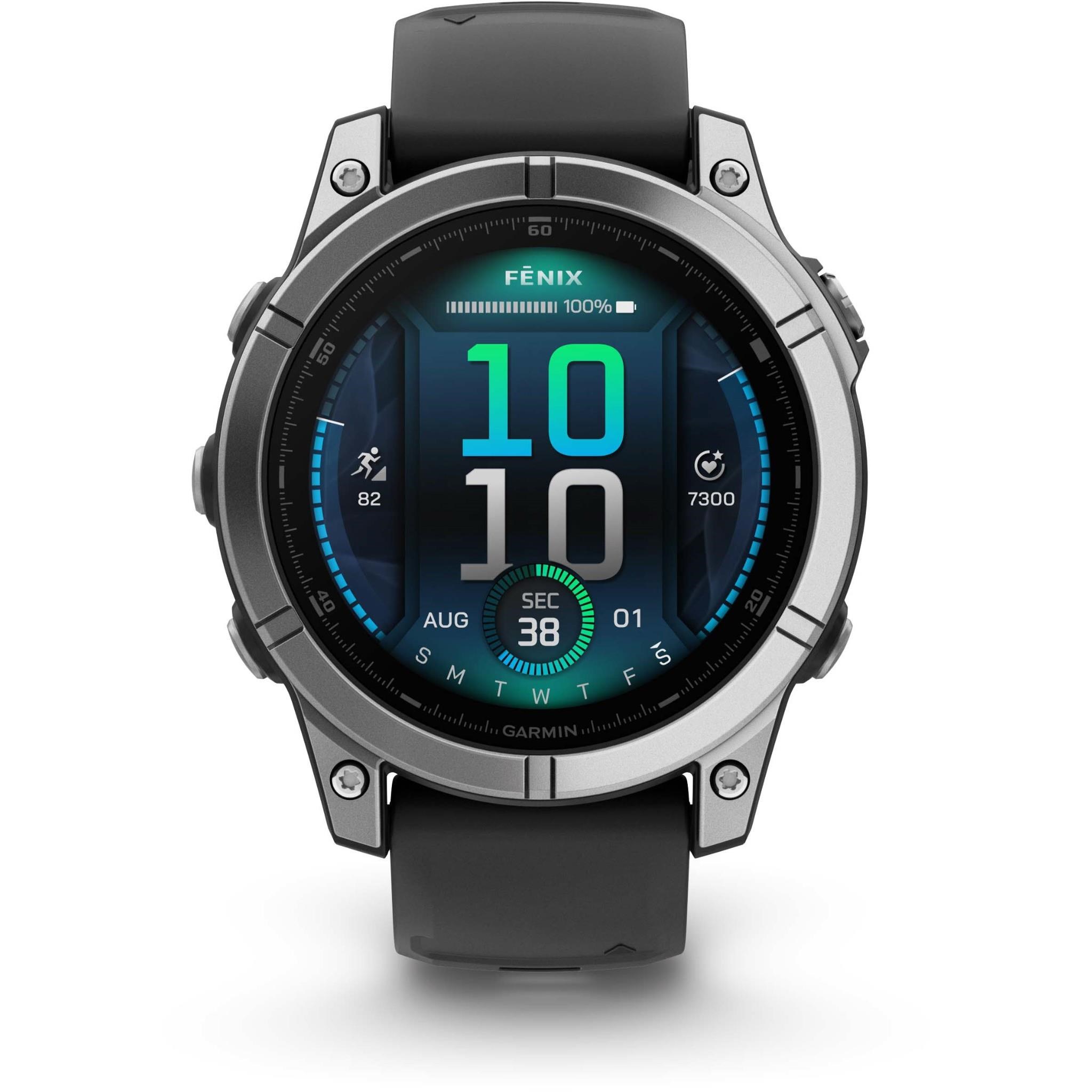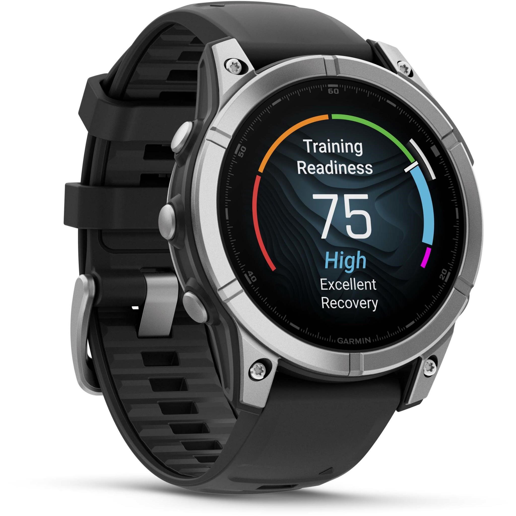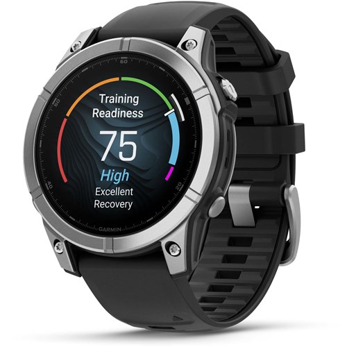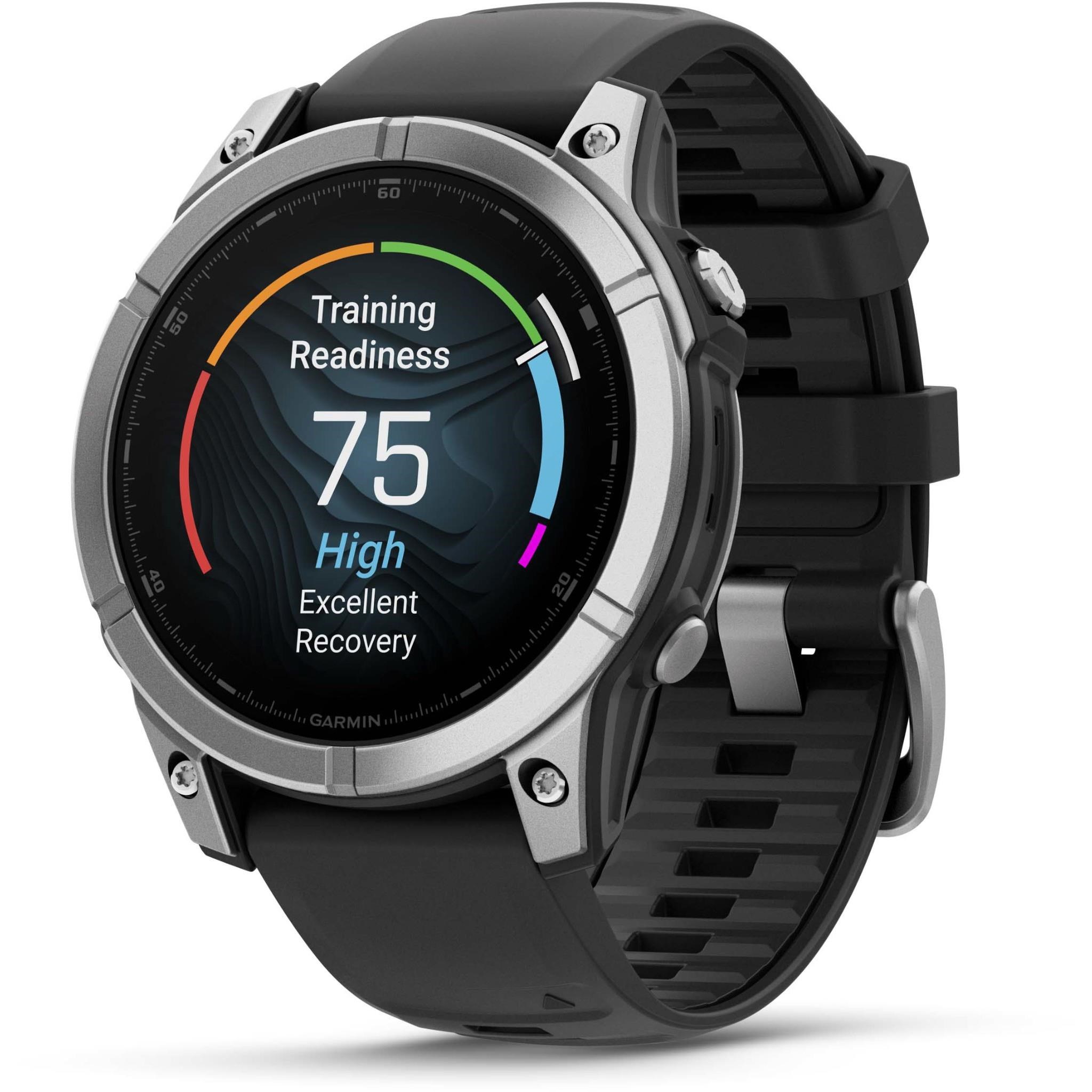 Be limitless. The fenix® E multisport GPS smartwatch is for athletes and adventurers who want to push beyond their limits with essential features at hand. The E model has a bright 1.3” AMOLED display and stainless steel bezel. Power up with the latest in targeted strength training plans and built-in sports apps. Build stamina while optimizing recovery with 24/7 health and wellness monitoring of heart rate. respiration. stress. sleep and more (data presented is intended to be a close estimation of metrics tracked). Take to the trails with built-in ABC sensors and TopoActive maps that can be easily downloaded via Wi-Fi® connectivity. The dynamic round-trip routing feature lets you set your target distance and get turn-by-turn directions that adjust to get you back to your start on schedule. Enjoy off-grid adventures with up to 16 days of battery life in smartwatch mode. And support your on-the-go lifestyle with smart notifications. Garmin Pay™ contactless payments (with a supported country and payment network). music storage and more.