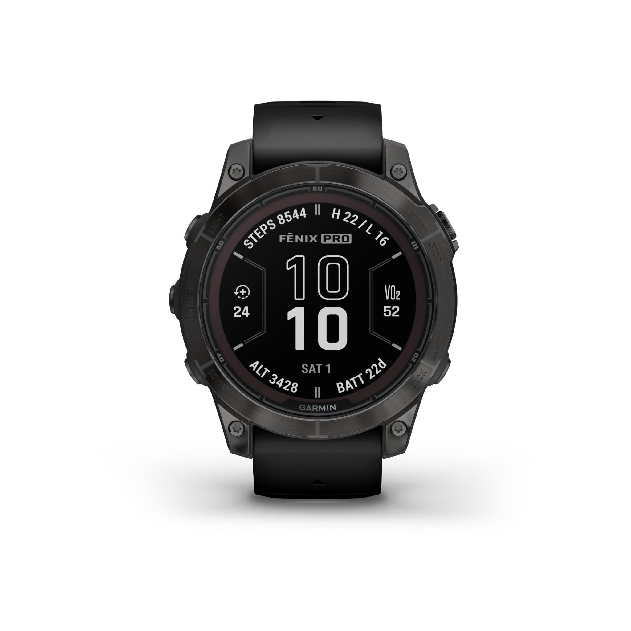 fenix® 7 Pro Sapphire Solar is the ultimate multisport GPS smartwatch designed to perform all day. every day. Venture beyond your limits with advanced training features. 24/7 health and wellness monitoring. and an LED flashlight. Get up to 22 days of battery life in smartwatch mode with 3 hours of direct sunlight (50.000 lux) per day. thanks to the Power Sapphire™ solar charging lens.