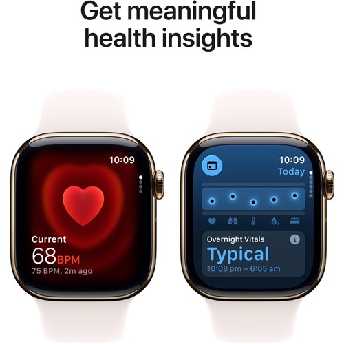 Take an ECG at any time.3 Get notified of an unusually high or low heart rate. an irregular rhythm4 and possible sleep apnoea.5 View overnight health metrics with the Vitals app6 and take readings of your blood oxygen.7
