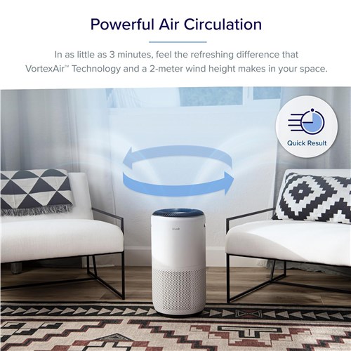 Captures at least 99.97% of airborne particles 0.3 microns in size. 99.9% of airborne particles 0.1 microns in size. and HEPASmart™ Technology enhances filtration. capturing 99.99% of bacteria and mold. and 99.9% of viruses.