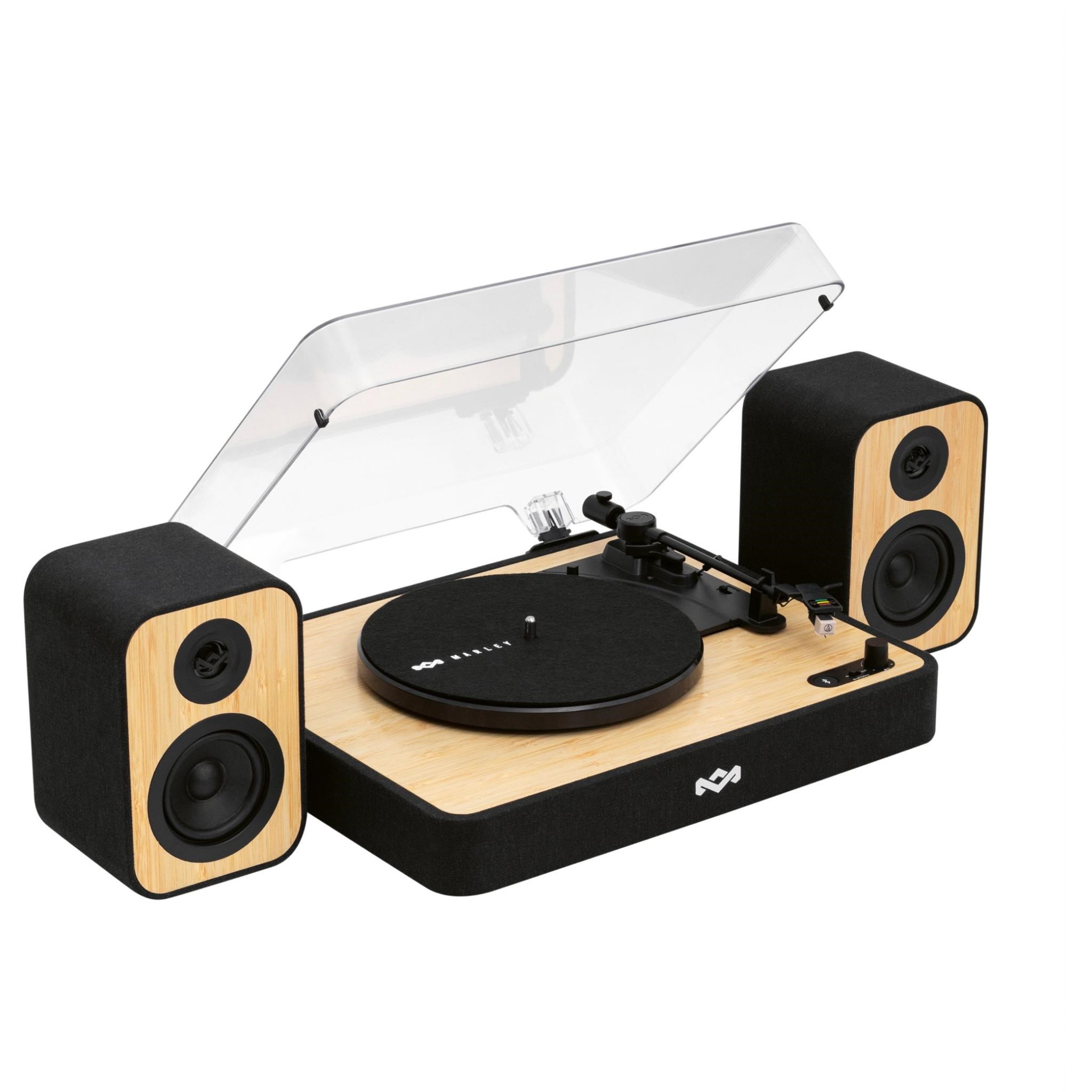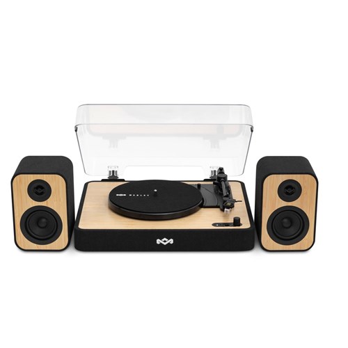 Introducing the Revolution Turntable with Speakers from House of Marley—a seamless blend of eco-conscious design and superior audio performance. This turntable is equipped with a replaceable AT3600L Audio Technica cartridge. ensuring high-quality sound reproduction and long-lasting use. With three-speed options (45/33/78 RPM). the Revolution Turntable caters to all your vinyl records. offering versatility for any collection. The included RCA output with a built-in pre-amp allows easy connection to your audio system. while the belt-drive mechanism ensures smooth. consistent playback. Paired with included speakers that deliver superior sound. this turntable offers an all-in-one solution for music lovers seeking both quality and convenience.?
