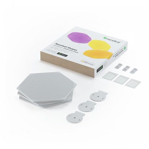 The Nanoleaf Shapes Hexagons elevate the concept of smart lighting into a creative journey of design. A combination of smart technology and sleek ultra-thin design. the modular LED light panels open limitless possibilities for you to explore. create. and play. Transform your space with multi-sensory experiences like touch interactions. real-time music sync. screen mirror. and more. Customise and create your own Scenes and Playlists in the Nanoleaf App. To install. simply mount to the wall with the included “no-drill” Mounting Tape. Hexagons are designed with Connect+ technology to work with future shapes. offering limitless lighting. design and IoT possibilities for your smart home decor.