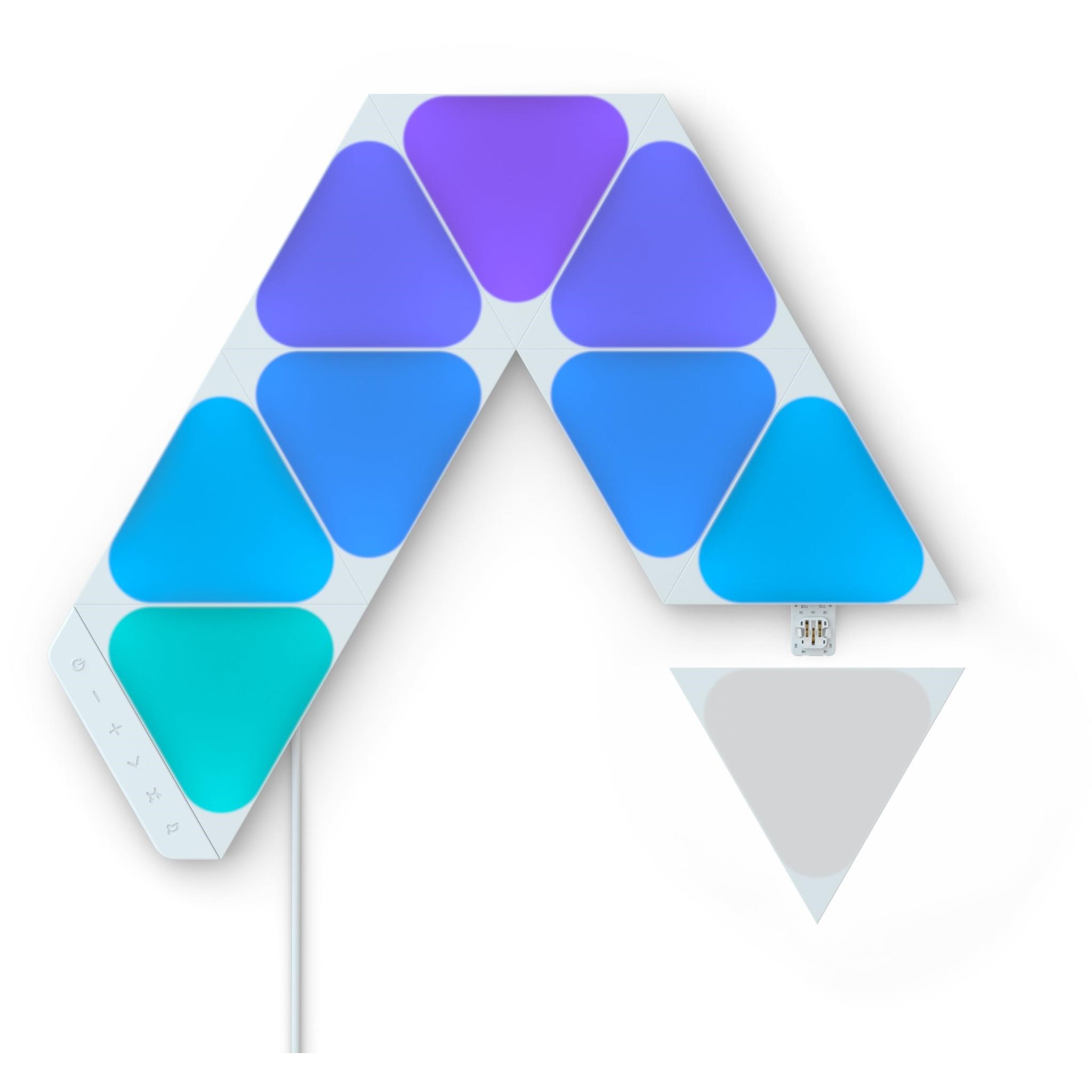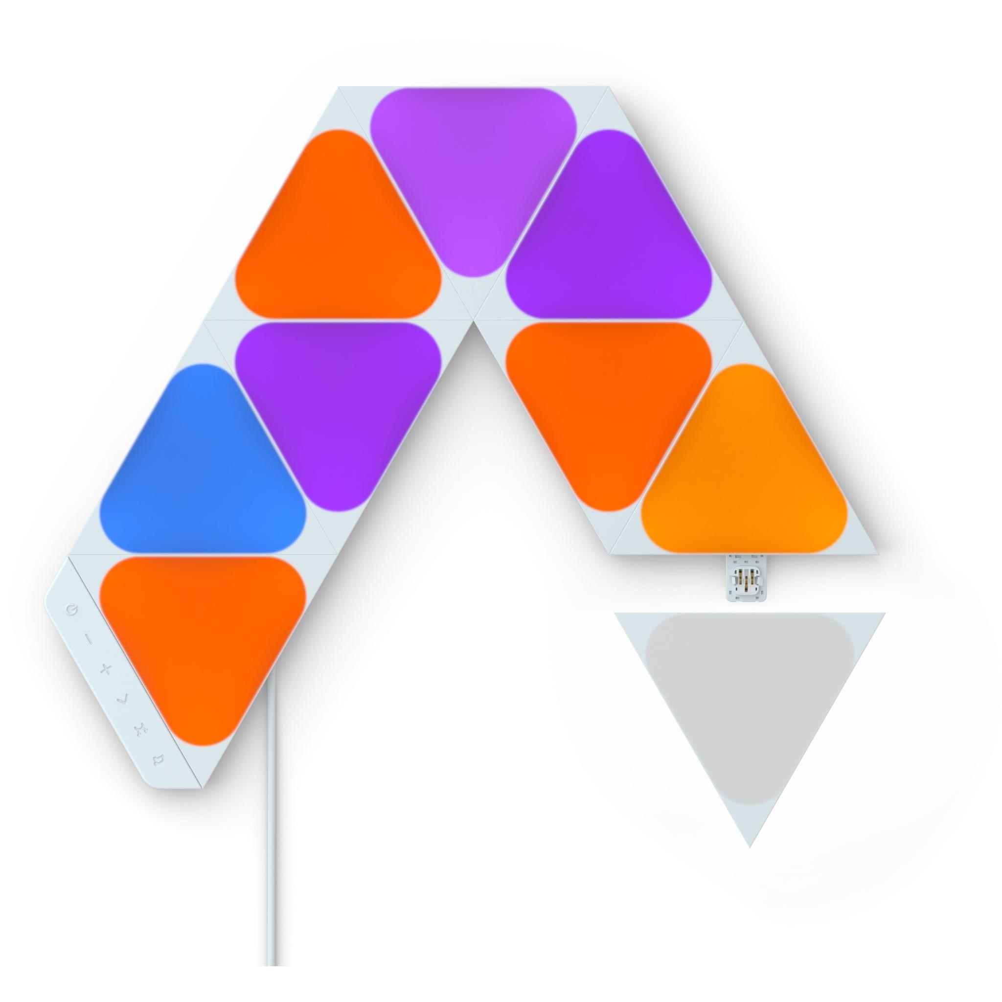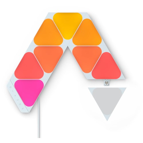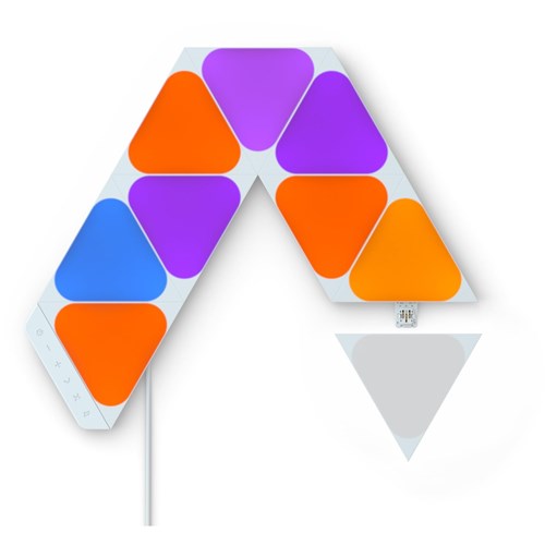 Nanoleaf Shapes - Mini Triangles are compact modular LED light panels with a combination of smart technology and sleek ultra-thin design. It's perfect for designing a statement wall. setting up your personal productivity zone. or creating the right ambience for any occasion. Transform your space with multi-sensory experiences like touch interactions. real-time music sync. screen mirror. and more. Customise and create your own Scenes and Playlists in the Nanoleaf App.