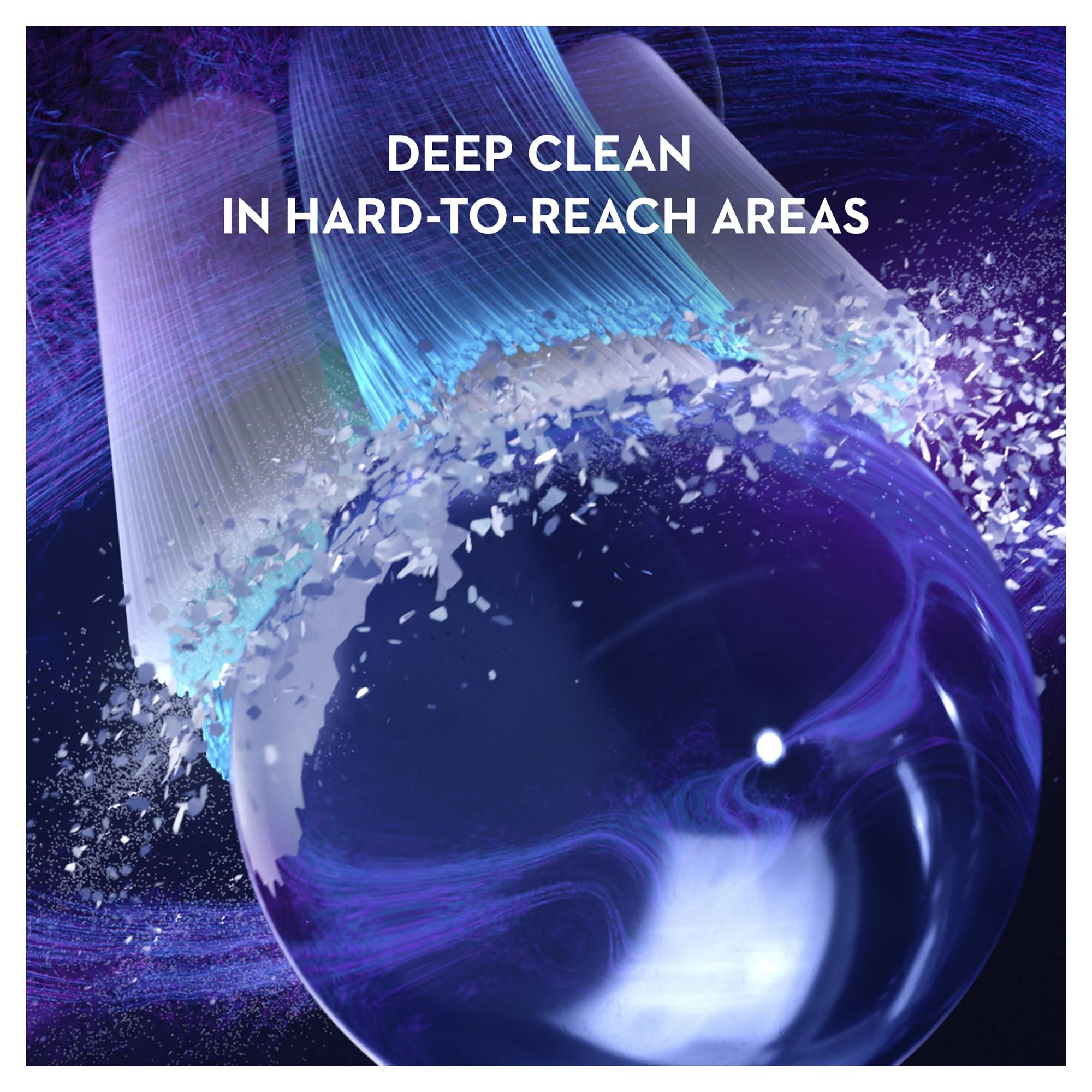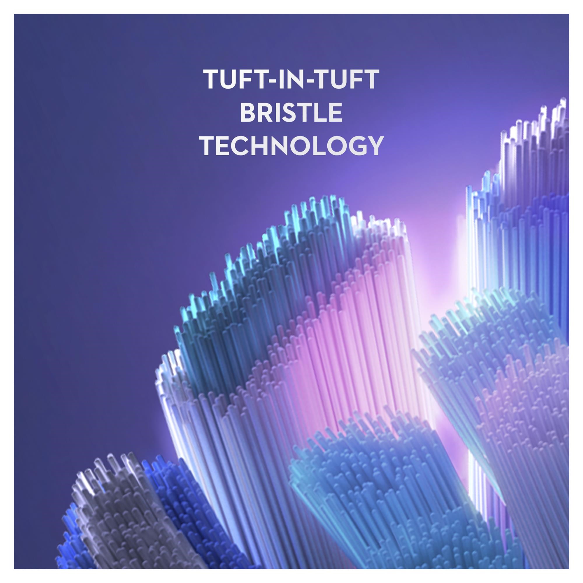The dual-length bristles surround and reach deep in-between teeth and have higher density for an ultimate clean