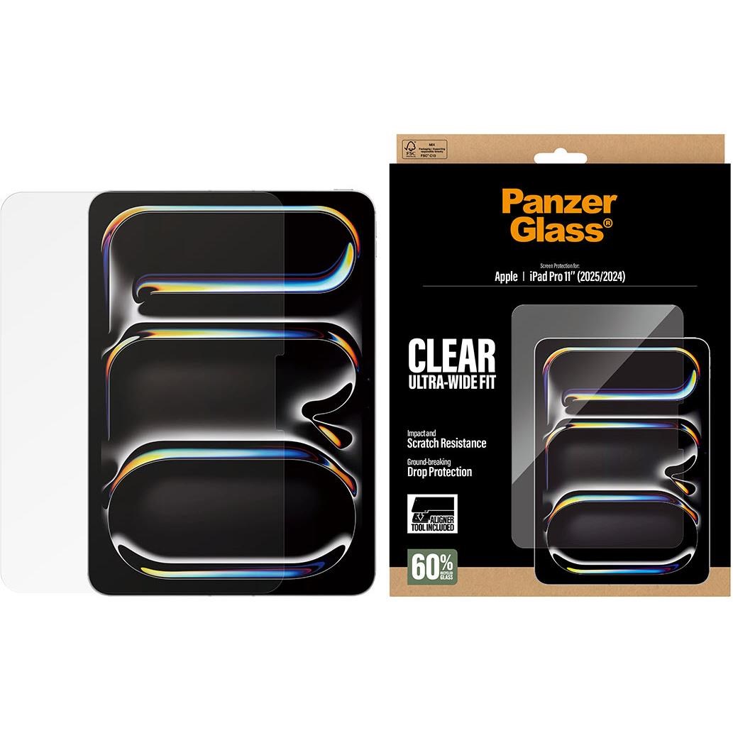 Introducing our PanzerGlass® screen protector. made from 60% recycled glass. iPads are part of everyday life – and that means they’re exposed to everyday hazards like drops. bumps. and scratches. And that’s exactly what this PanzerGlass® screen protector is made for: keeping your iPad safe from life’s little accidents. Unexpected bumps against sharp-edged table corners or falls onto stone-hard floors are no match for its scratch and shock-resistant layers. Installation is a breeze with the new FastFit tool. Say goodbye to misalignment and dust intrusion. Simply place your iPad face-up. pull the tab. and enjoy the flawless installation. The Ultra-Wide Fit screen protector covers the entire front surface of your iPad. while still leaving room for a case. It provides a complete and crystal-clear view of your screen and comes in FSC™-certified packaging that can be recycled. The PanzerGlass® screen protector. Goes on easy. Stays on strong. Trusted by iPad lovers of all ages.