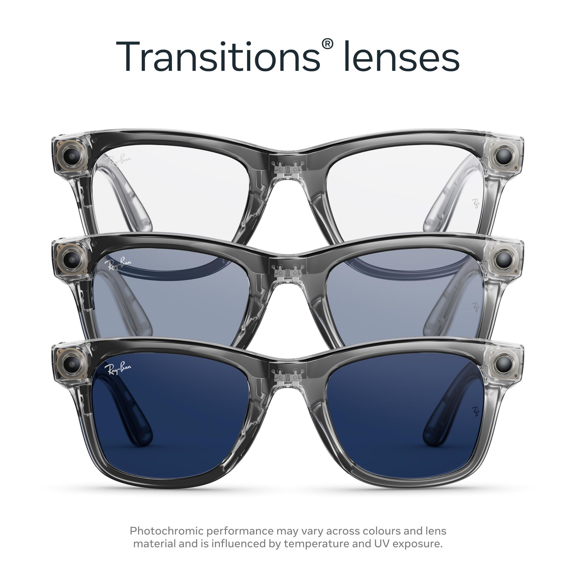 Ray-Ban | Meta Wayfarer Gen 2 AI Glasses (Shiny Transparent Grey/Transitions Sapphire)