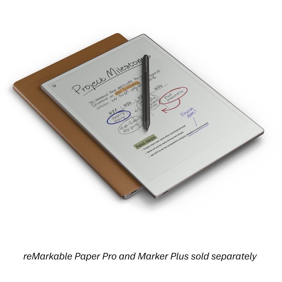 Premium and functional protection for your reMarkable Paper Pro. Book Folio is made from premium brown leather that's designed to fit your 11.8'' Paper Pro perfectly. and the built-in magnets snap your paper tablet in place so you can keep it in its cover while you work.
