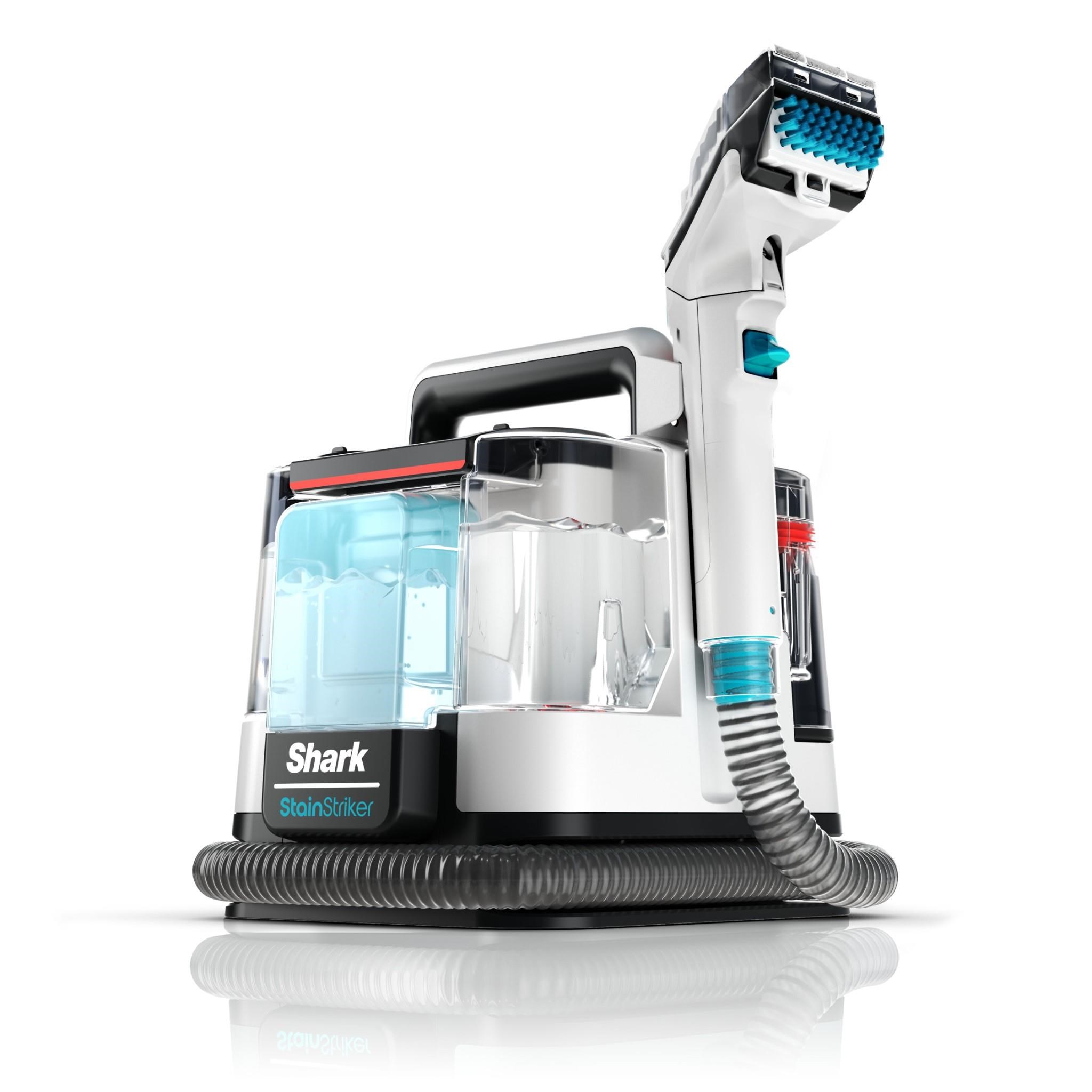 The Shark StainStriker is a portable spot & stain eliminator that delivers powerful tough stain elimination. Dual - activated solution for stain - striking power throughout your home: carpets. area rugs. couches. upholstery & more. The Shark StainStriker is a portable spot & stain eliminator that delivers powerful tough stain elimination. with no chemical premixing required.