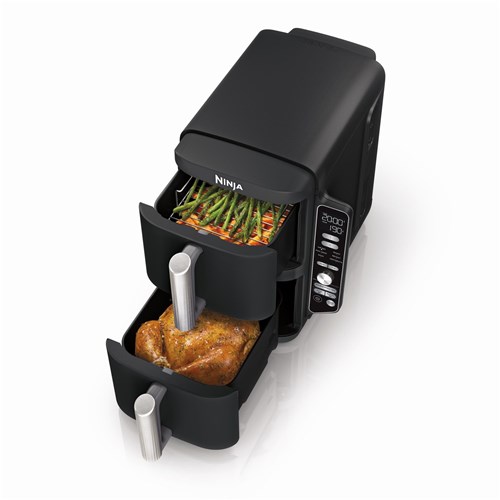 Meet the Ninja® DoubleStack™ XXXL 2 Drawer Air Fryer. the only stacked 2 drawer air fryer that can cook up to 4 foods at once. Ninja’s stacked 9.5L design maximises benchtop space while giving you the performance and capacity of 2 air fryers in the footprint of one. Only Ninja has DoubleStack Air Frying technology that delivers the optimal air flow and even heat required to cook 4 foods at once.