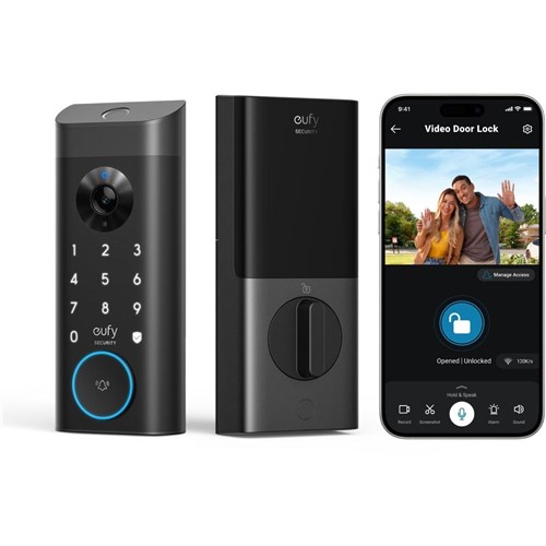Video Smart Lock E330 has easy installation. durability. and privacy* features. a 3-in-1 security solution integrating fingerprint recognition. a 2K HD camera. and a video doorbell. Unlock in 6 ways. control remotely via the eufy Security app. and enjoy a rechargeable battery with 10.000 mAh capacity.
