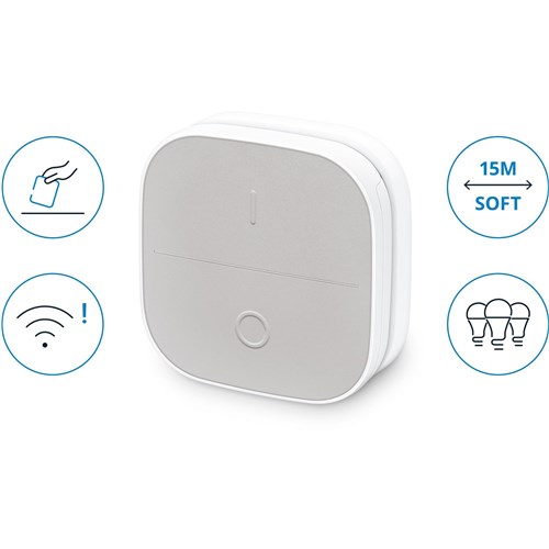 This easy-to-use button will surprise you by working everywhere. Stick it on the wall or in a corner without the need for screws or let a metal surface attract the magnet inside. Take it with you around your home and control your lights swiftly.